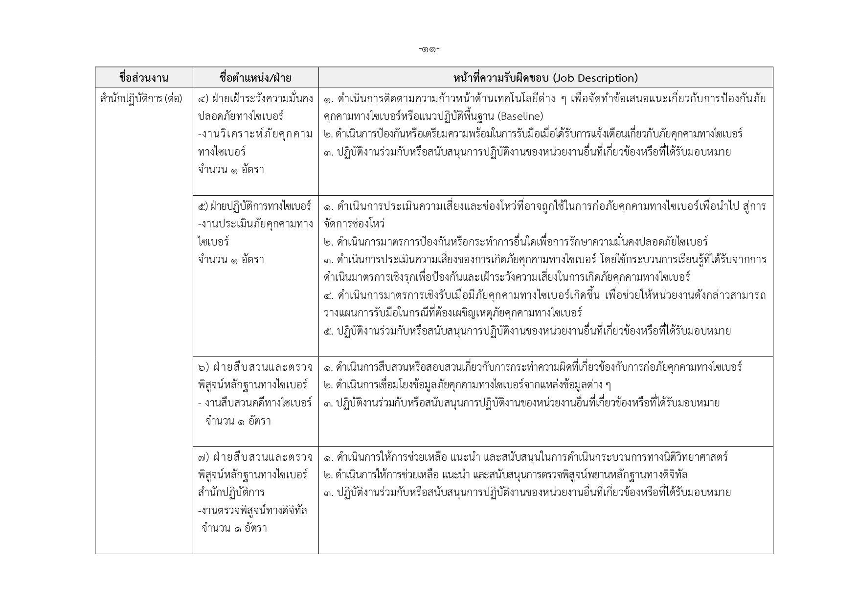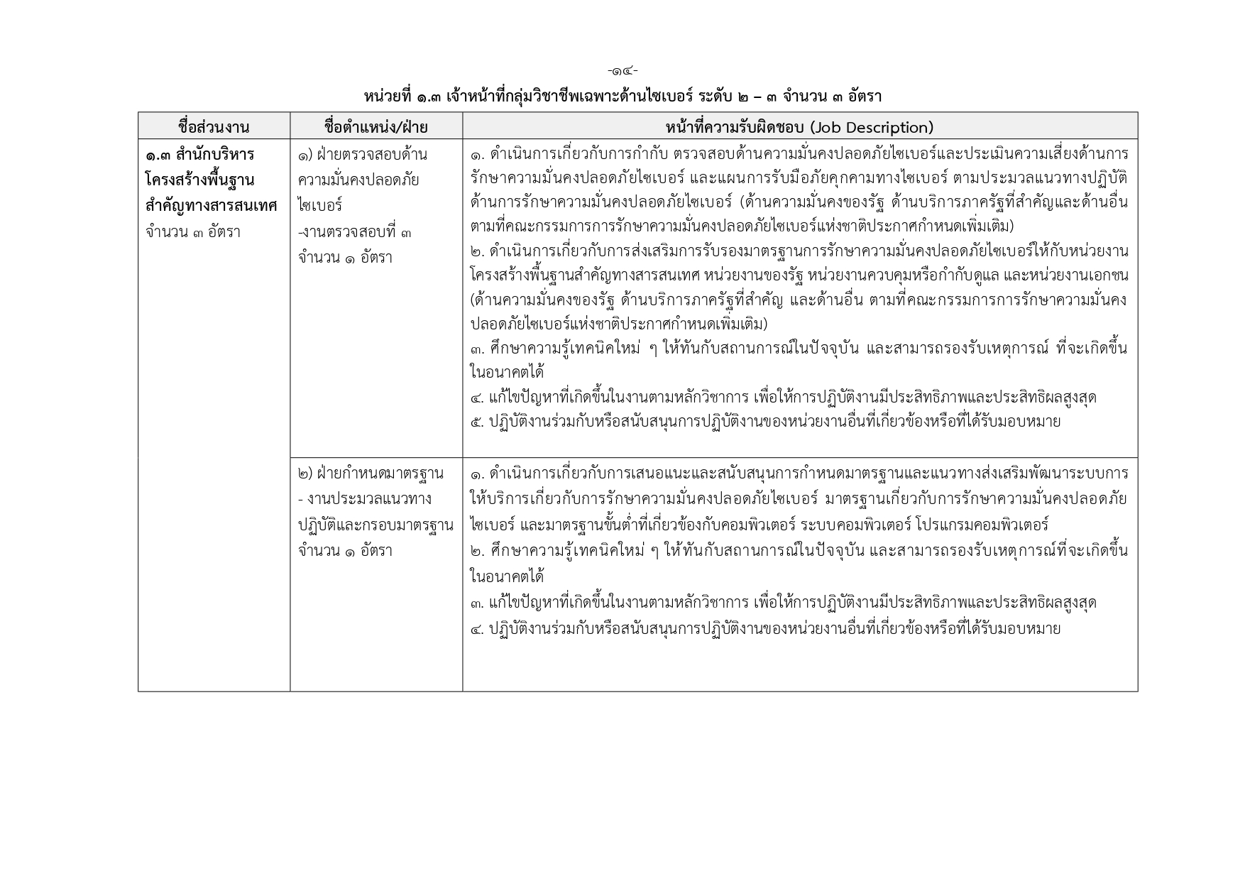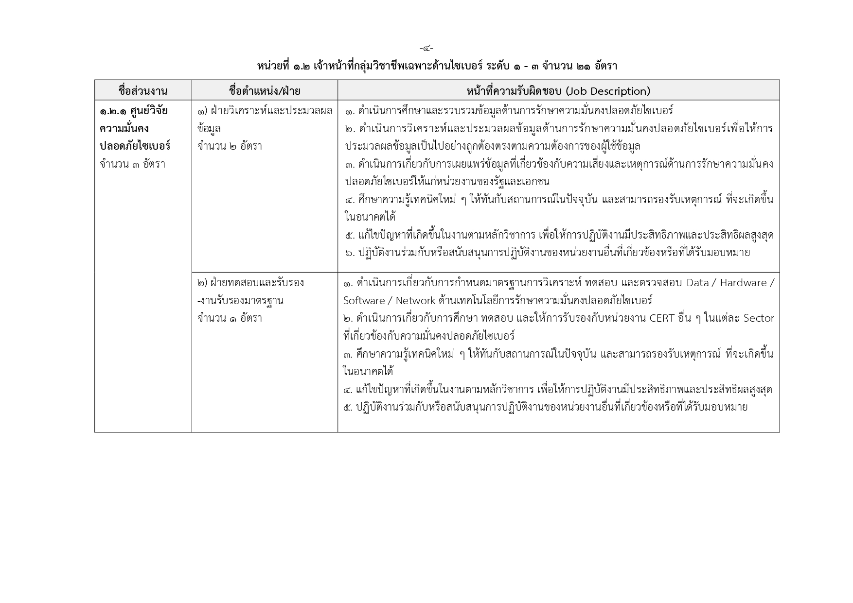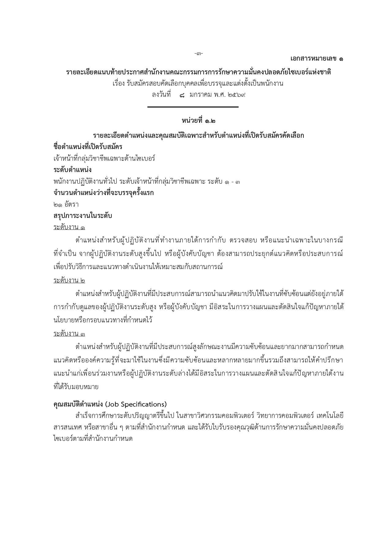 เจ้าหน้าที่กลุ่มวิชาชีพเฉพาะด้านไซเบอร์ ระดับ 1–3 (21 อัตรา)