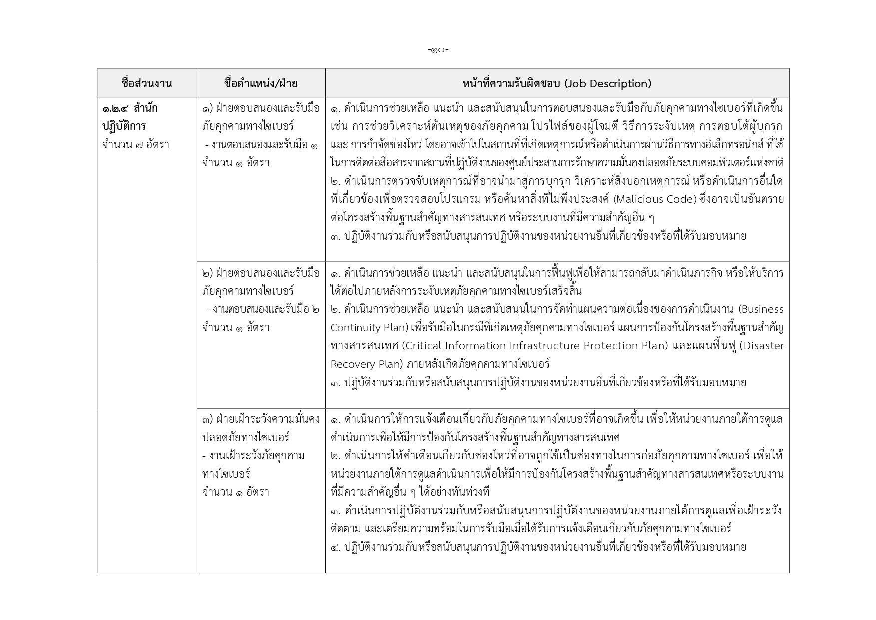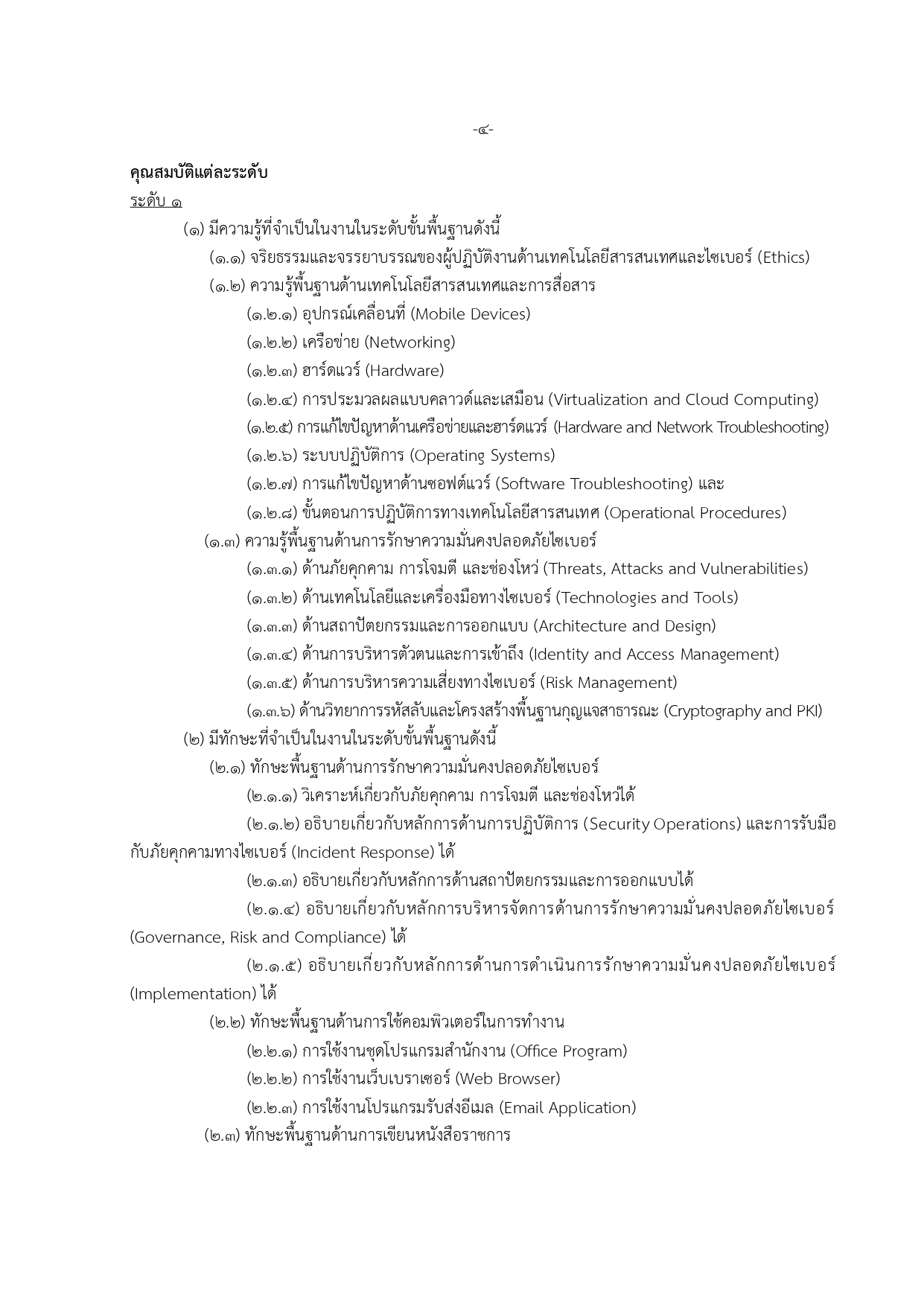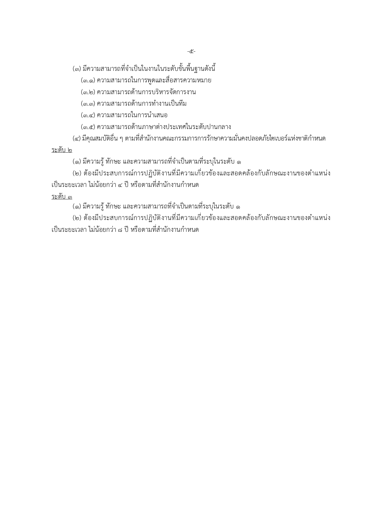 เจ้าหน้าที่กลุ่มวิชาชีพเฉพาะด้านไซเบอร์ ระดับ 1–3 (21 อัตรา)