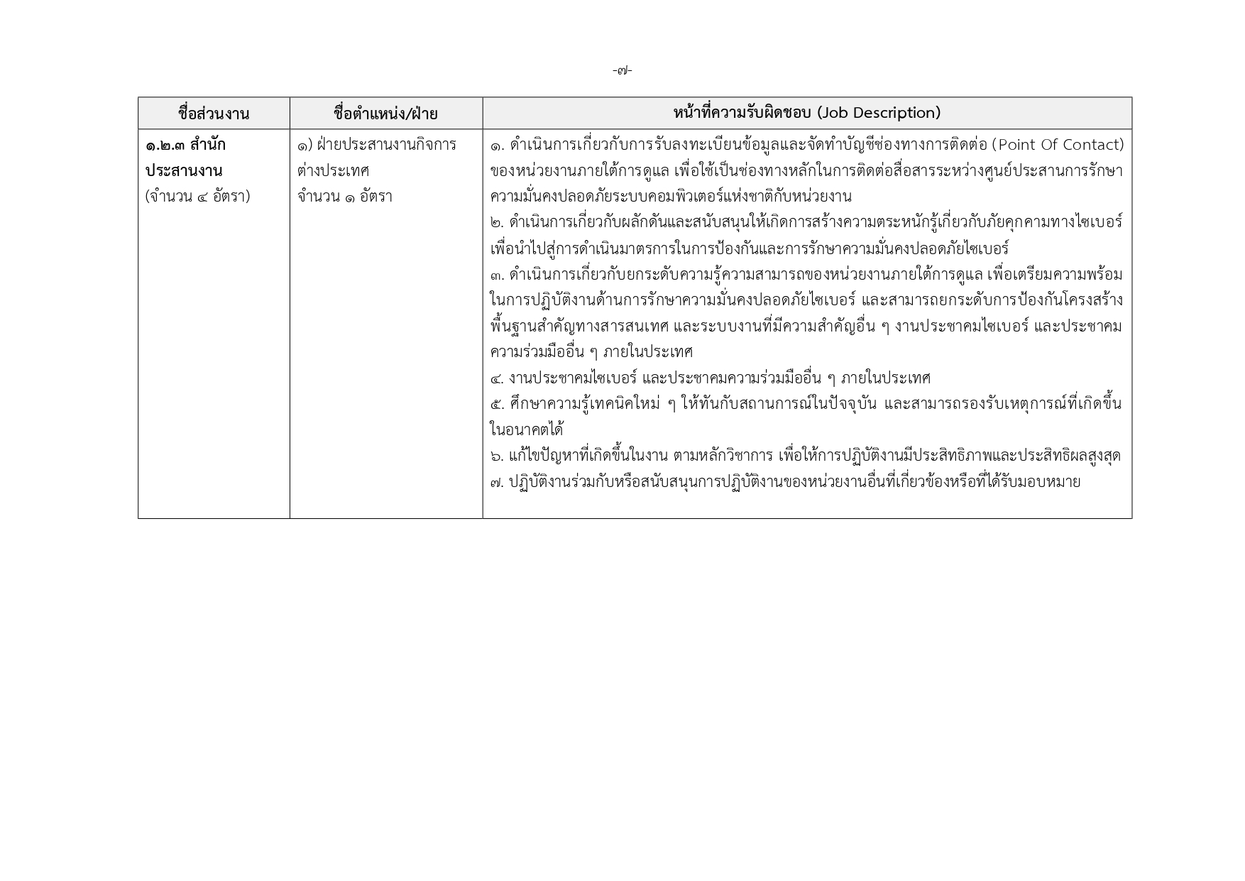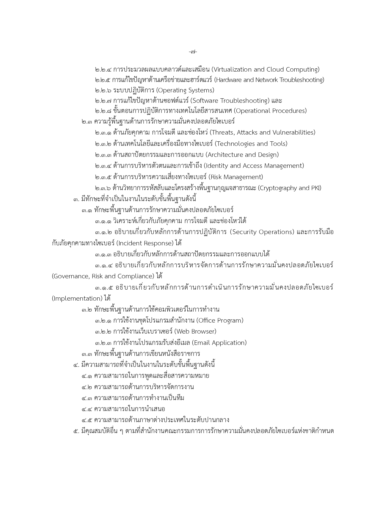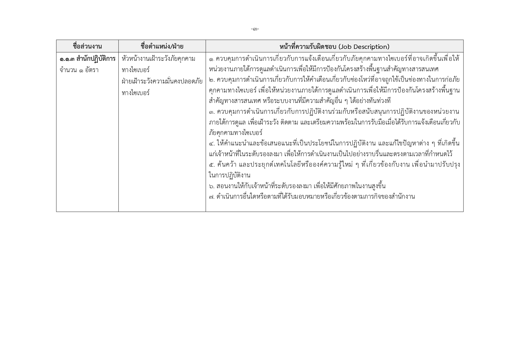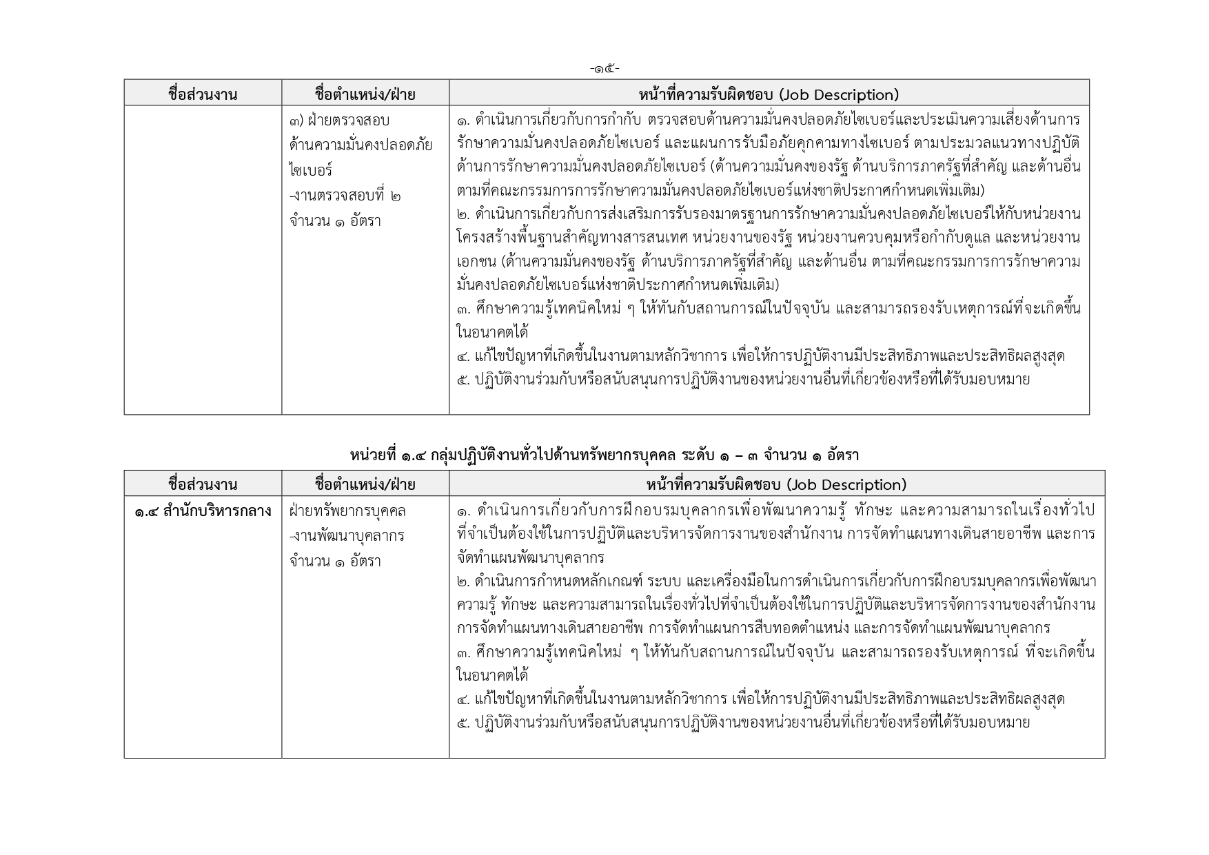 เจ้าหน้าที่กลุ่มวิชาชีพเฉพาะด้านไซเบอร์ ระดับ 1–3 (21 อัตรา)