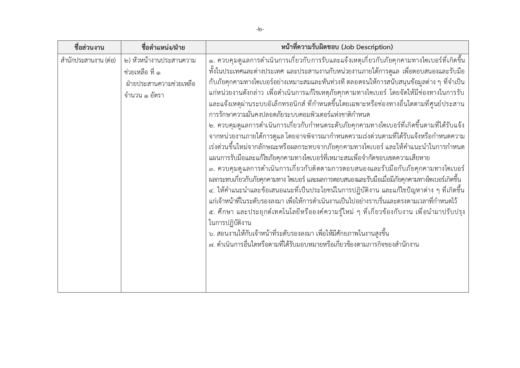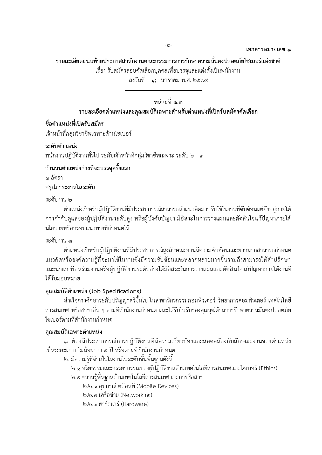 เจ้าหน้าที่กลุ่มวิชาชีพเฉพาะด้านไซเบอร์ ระดับ 2–3 (3 อัตรา)