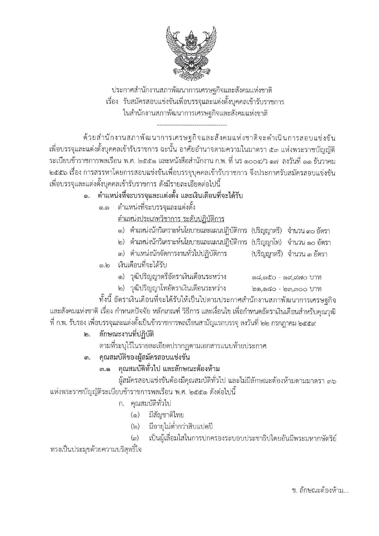 คลิกที่นี่เพื่ออ่าน ประกาศสำนักงานสภาพัฒนาการเศรษฐกิจและสังคมแห่งชาติ เรื่อง รับสมัครสอบแข่งขันเพื่อบรรจุและแต่งตั้งบุคคลเข้ารับราชการในสำนักงานสภาพัฒนาการเศรษฐกิจและสังคมแห่งชาติ