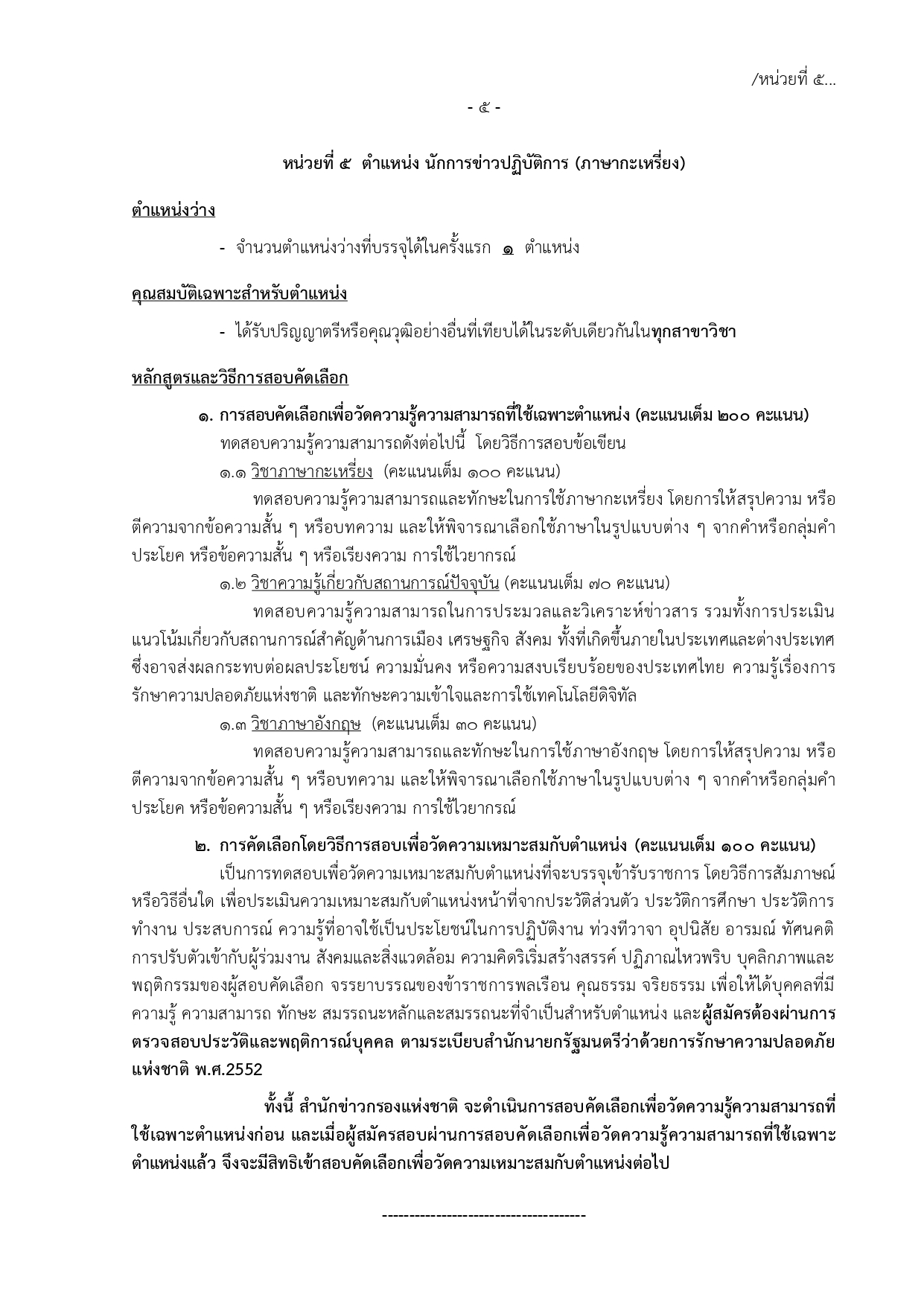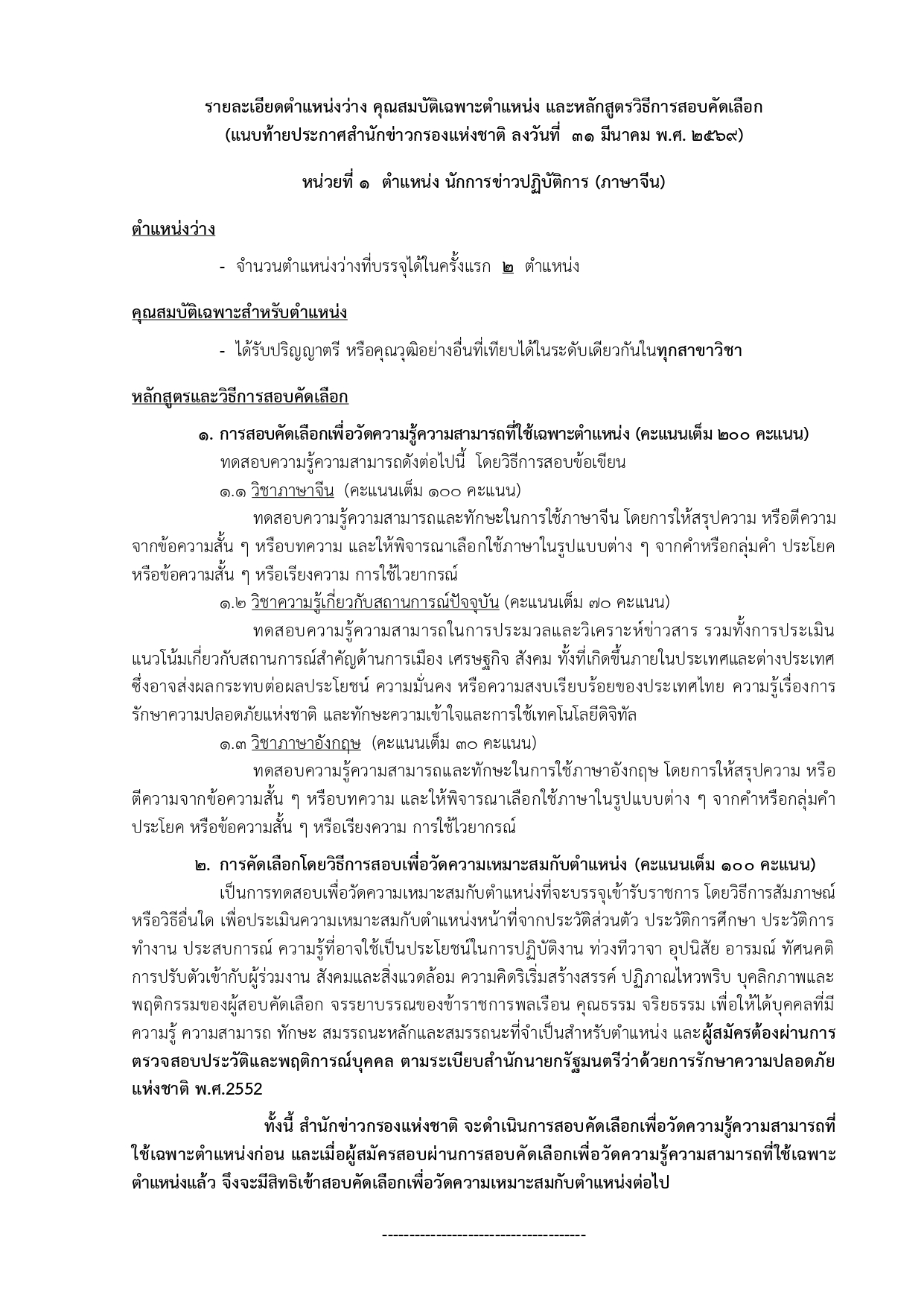 ตำแหน่ง: นักการข่าวปฏิบัติการ (ด้านภาษาต่างประเทศ)