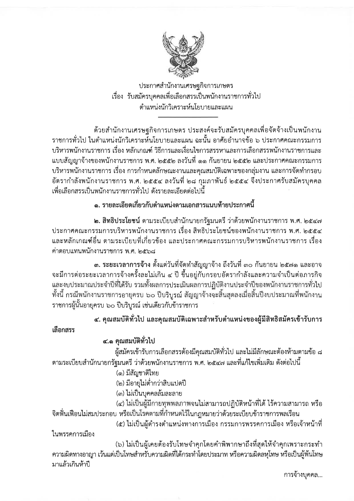 คลิกที่นี่เพื่ออ่าน ประกาศสำนักงานเศรษฐกิจการเกษตร เรื่อง รับสมัครบุคคลเพื่อเลือกสรรเป็นพนักงานราชการทั่วไป ตำแหน่งนักวิเคราะห์นโยบายและแผน