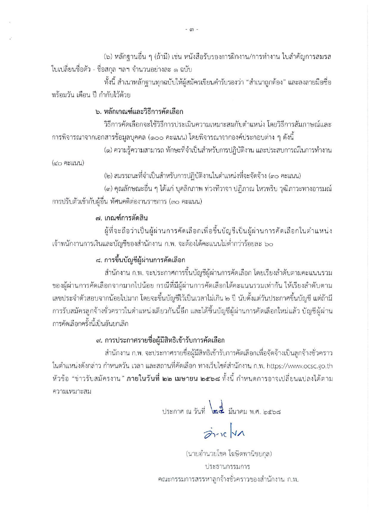 เรื่อง รับสมัครคัดเลือกบุคคลเพื่อจัดจ้างเป็นลูกจ้างชั่วคราวในตำแหน่งเจ้าพนักงานการเงินและบัญชี ของสำนักงาน ก.พ.
