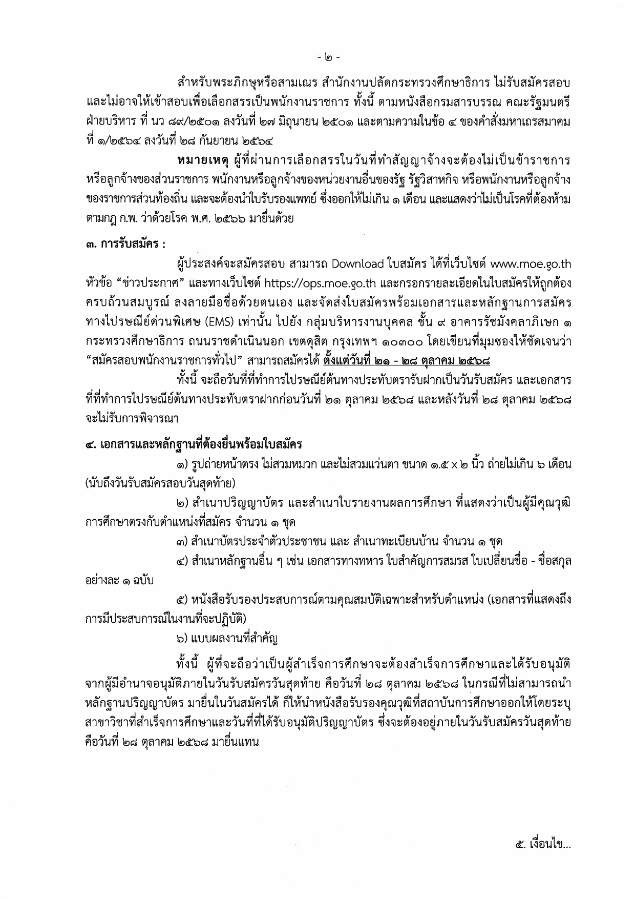 กระทรวงศึกษาธิการ รับสมัครบุคคลเพื่อบุคคลเป็นพนักงานราชการ ป.ตรี หลายสาขา / ไม่ต้องผ่าน ภาค ก ของ กพ / เงินเดือน 37,680 / สมัคร 21 – 28 ตุลาคม 2568