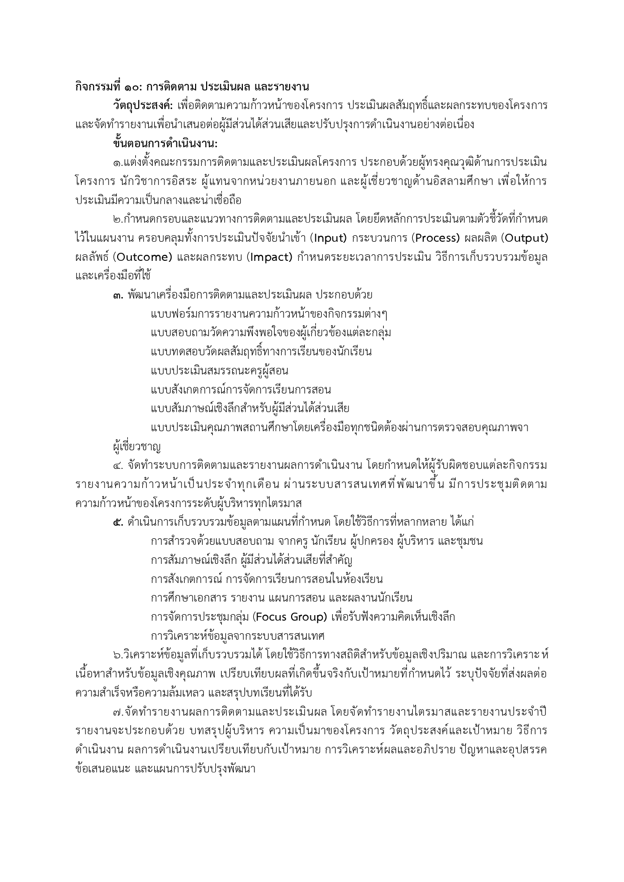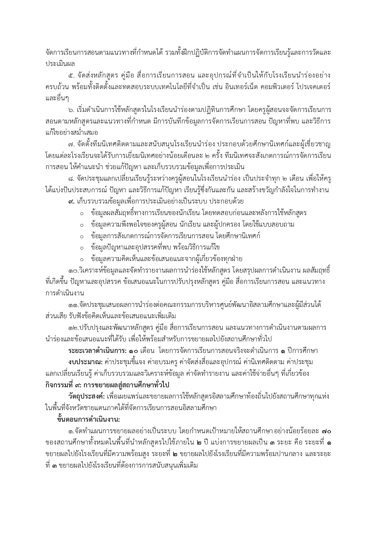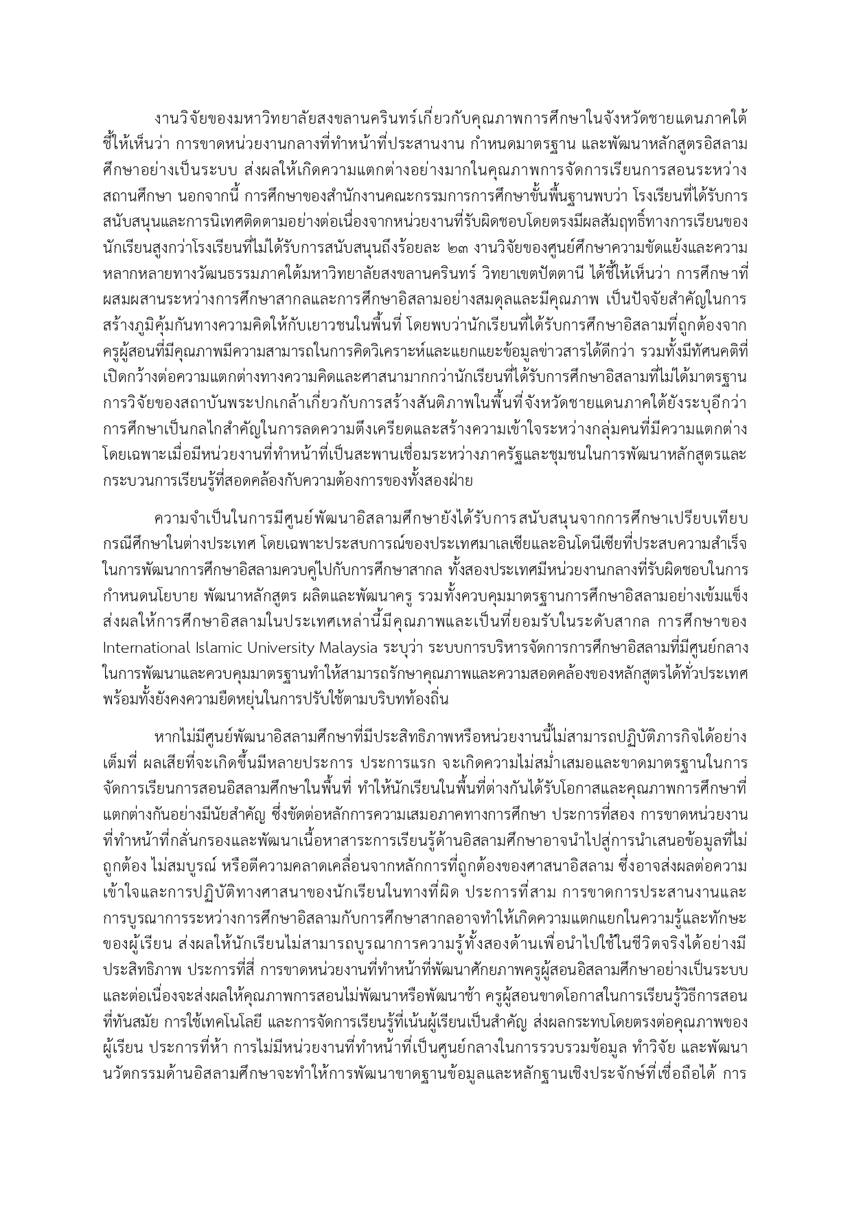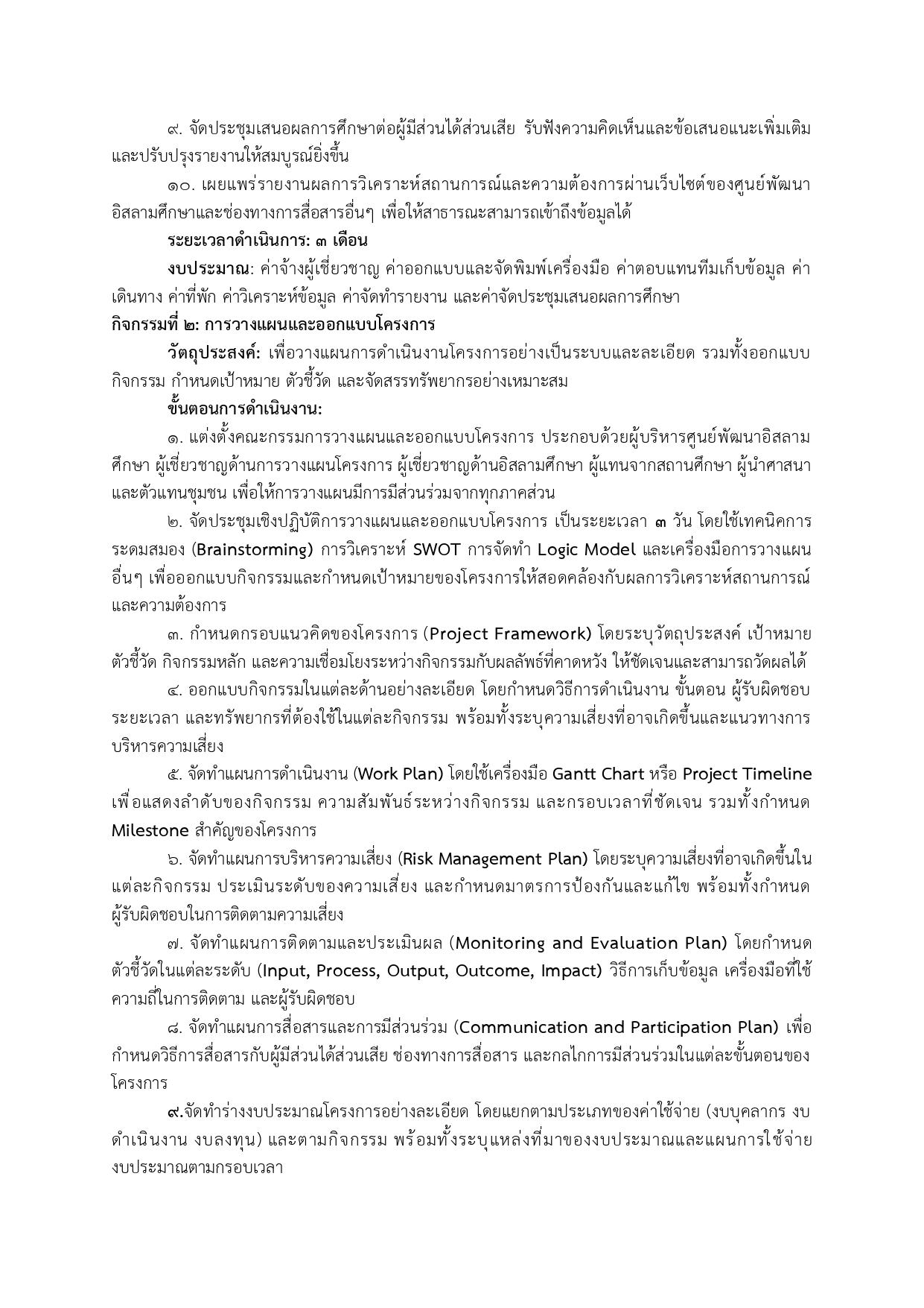 1. ด้านปฏิบัติการ: เน้นการส่งเสริมอิสลามทั่วไป การพัฒนาบุคลากรอิสลามศึกษาทุกระดับ (ตาดีกา, ปอเนาะ, โรงเรียนของรัฐ) การพัฒนาหลักสูตรการเรียนการสอน และงานข้อมูลสารสนเทศ เทคโนโลยีอิสลามศึกษา