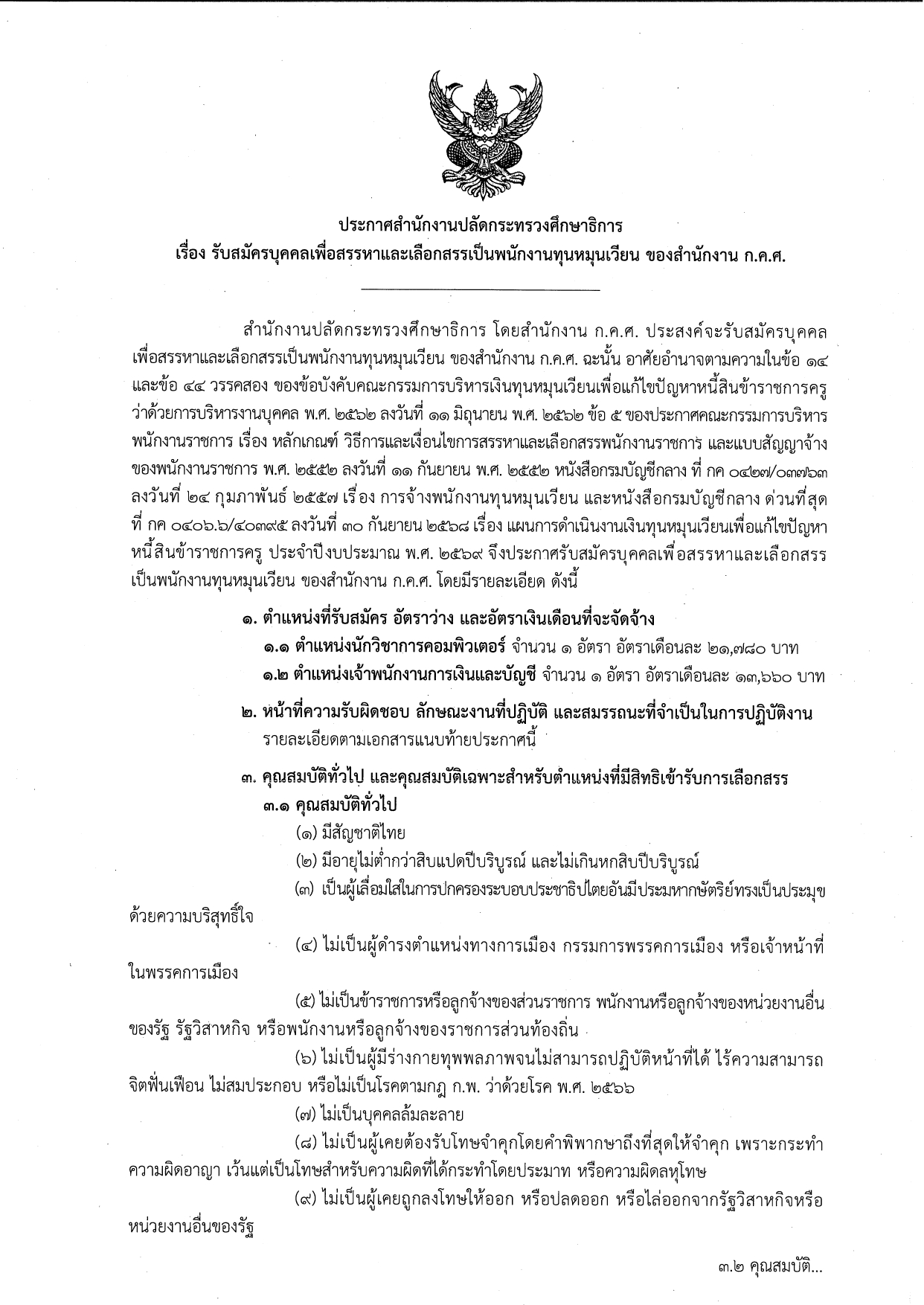 เรื่อง รับสมัครบุคคลเพื่อสรรหาและเลือกสรรเป็นพนักงานทุนหมุนเวียน ของสำนักงาน ก.ค.ศ. (ประจำปีงบประมาณ พ.ศ. 2569)