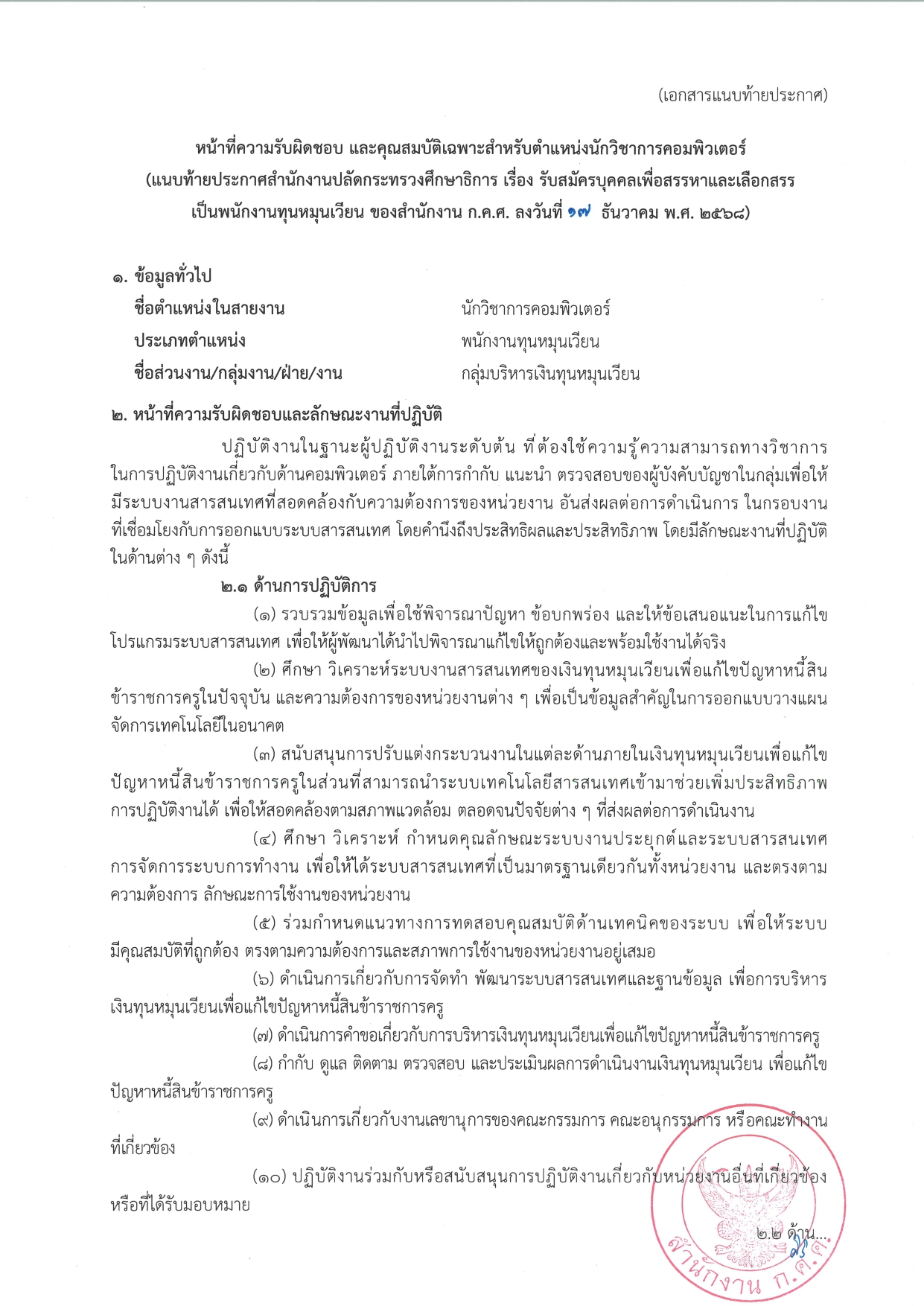 มีความประสงค์จะรับสมัครบุคคลเพื่อจัดจ้างเป็นพนักงานทุนหมุนเวียน (กองทุนหมุนเวียนเพื่อแก้ไขปัญหาหนี้สินข้าราชการครู)