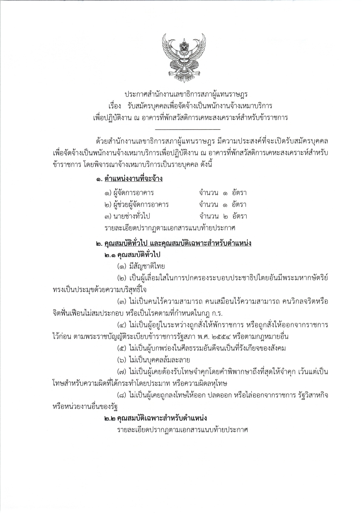 มีความประสงค์เปิดรับสมัครบุคคลเพื่อปฏิบัติงาน ณ อาคารที่พักสวัสดิการเคหะสงเคราะห์สำหรับข้าราชการ