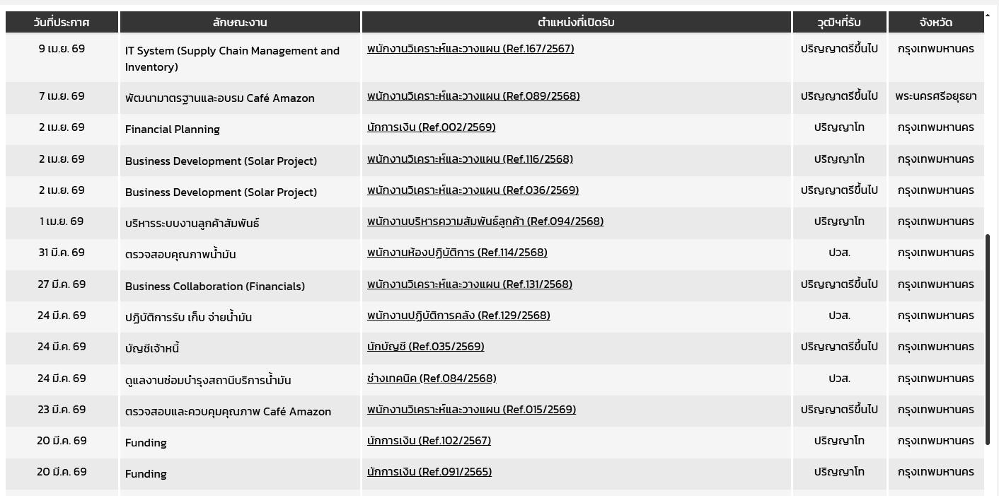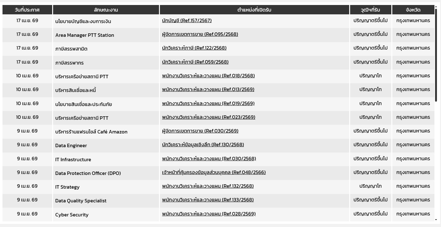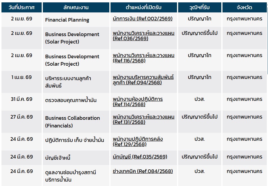 บริหารเครือข่ายสถานี PTT / นโยบายสินเชื่อ / บริหารสินเชื่อและหนี้: พนักงานวิเคราะห์และวางแผน (Ref.018, 013, 019, 023/2568-69)