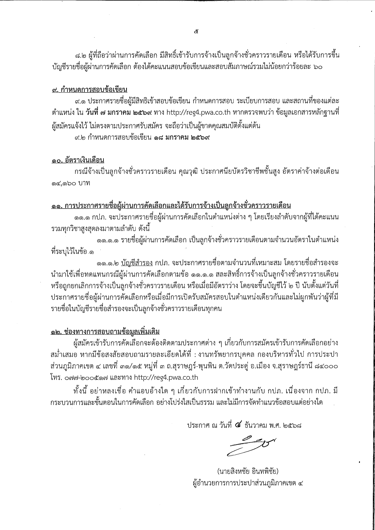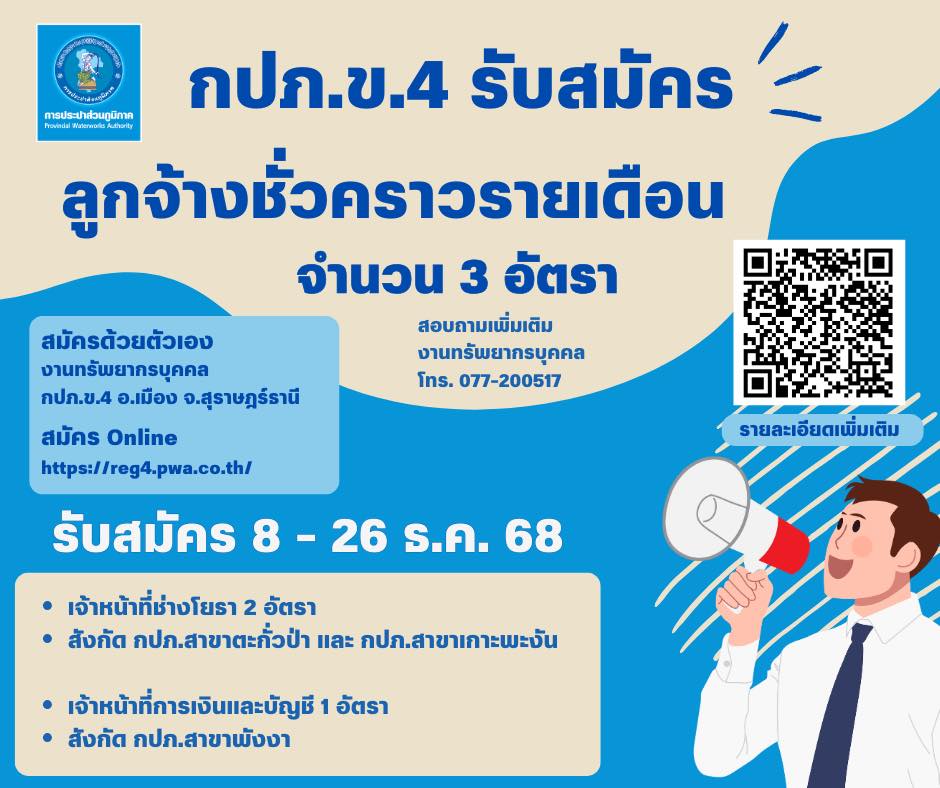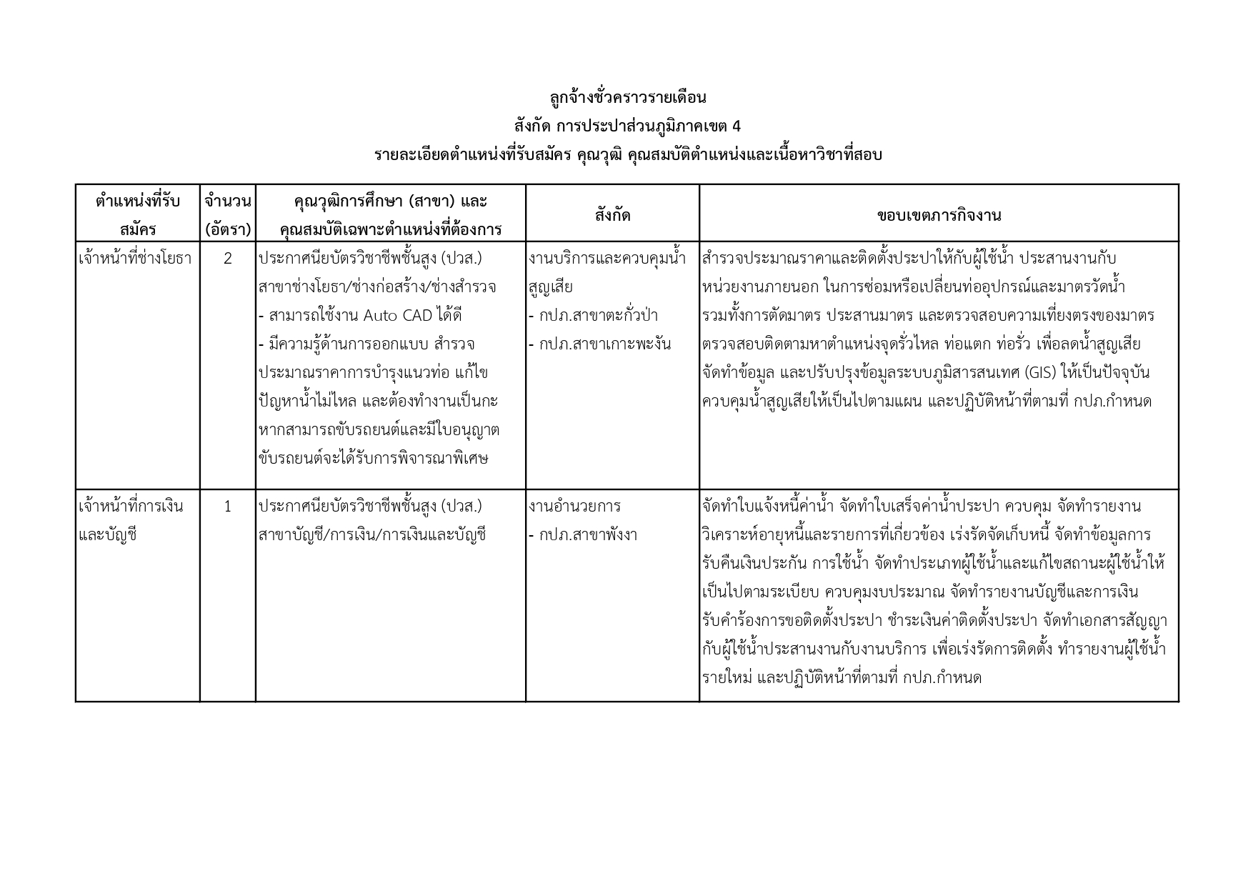 การประปาส่วนภูมิภาคมีความประสงค์จะรับสมัครบุคคลเพื่อจ้างเป็นลูกจ้างชั่วคราวรายเดือน