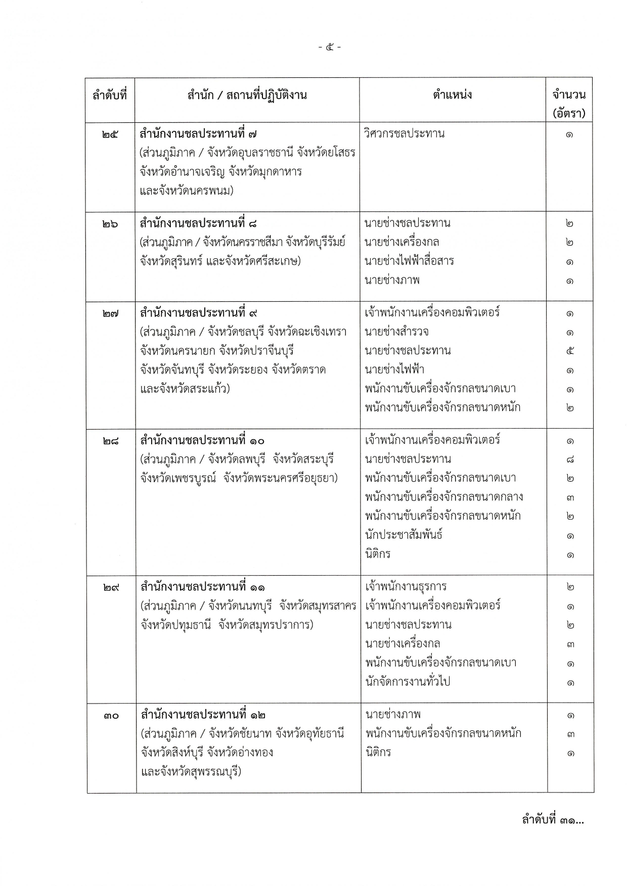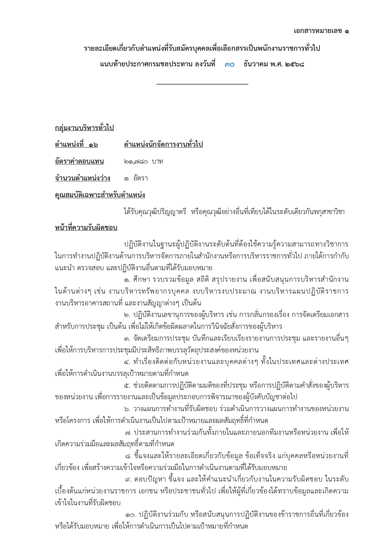 ประเภทพนักงานราชการทั่วไป ในตำแหน่งต่าง ๆ