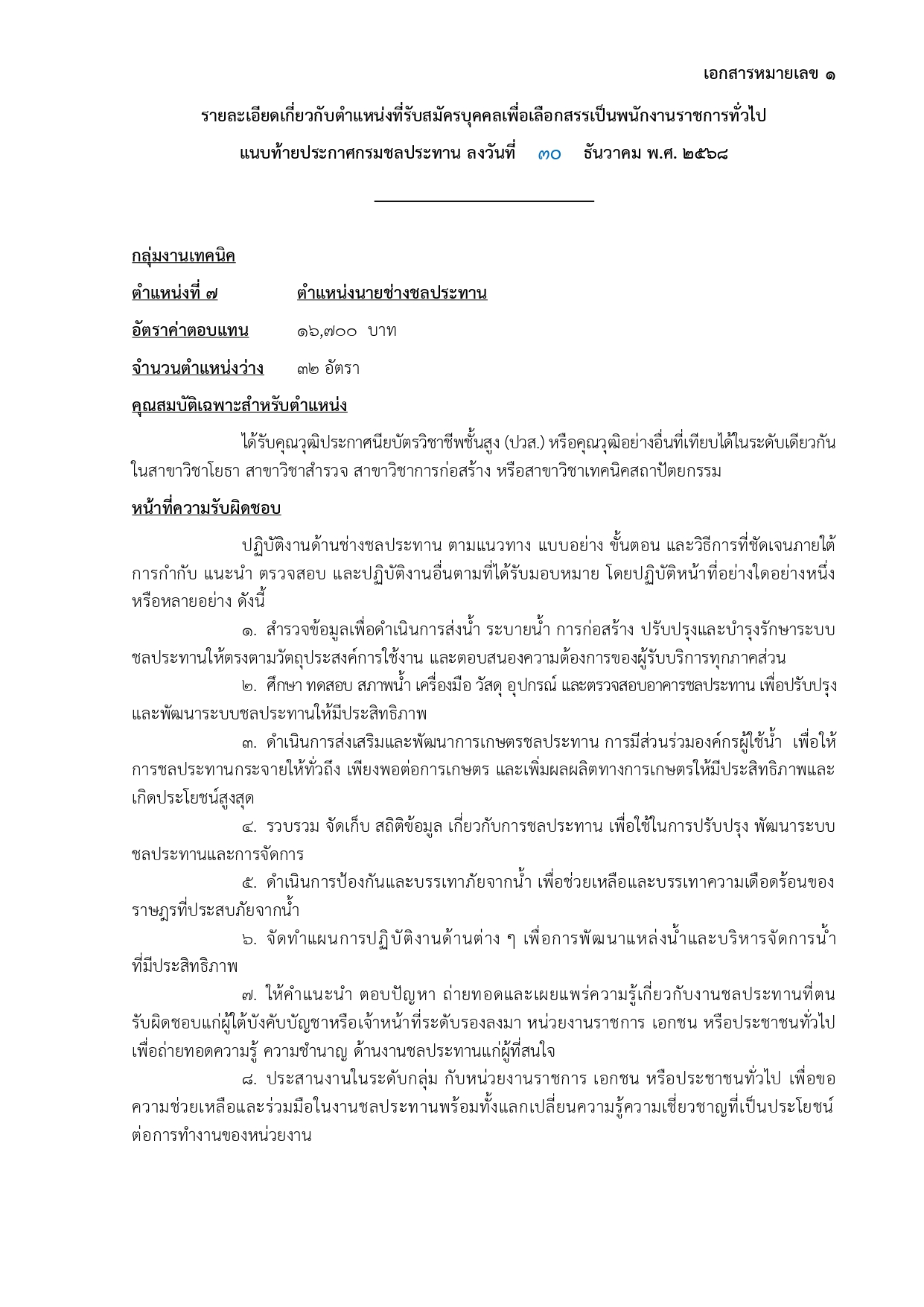 ด้วย กรมชลประทาน มีความประสงค์จะรับสมัครบุคคลเพื่อจัดจ้างเป็นพนักงานราชการ