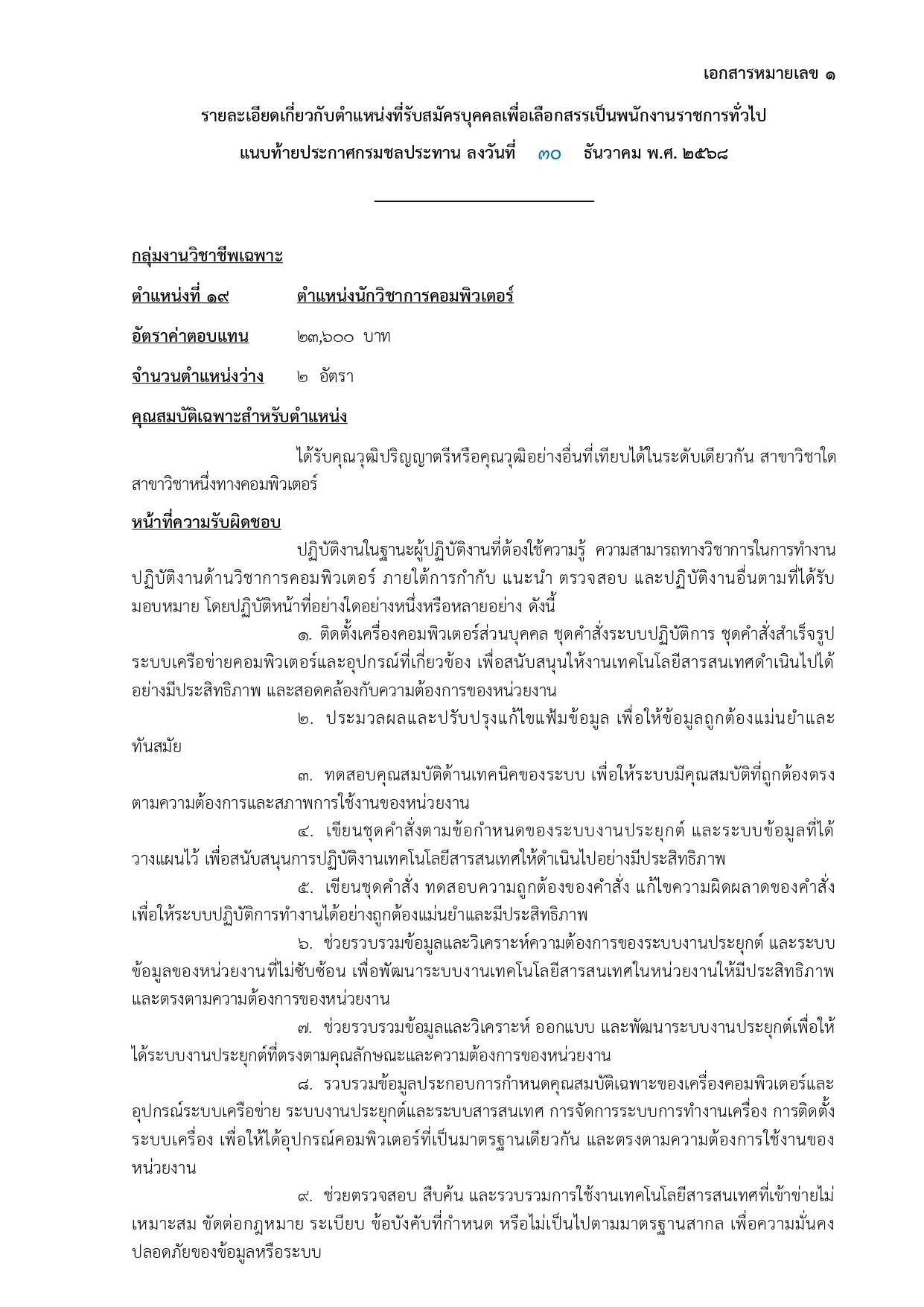 กดเพื่อดูรายละเอียด ตำแหน่ง กำหนดการ คุณสมบัติ  ต่อ