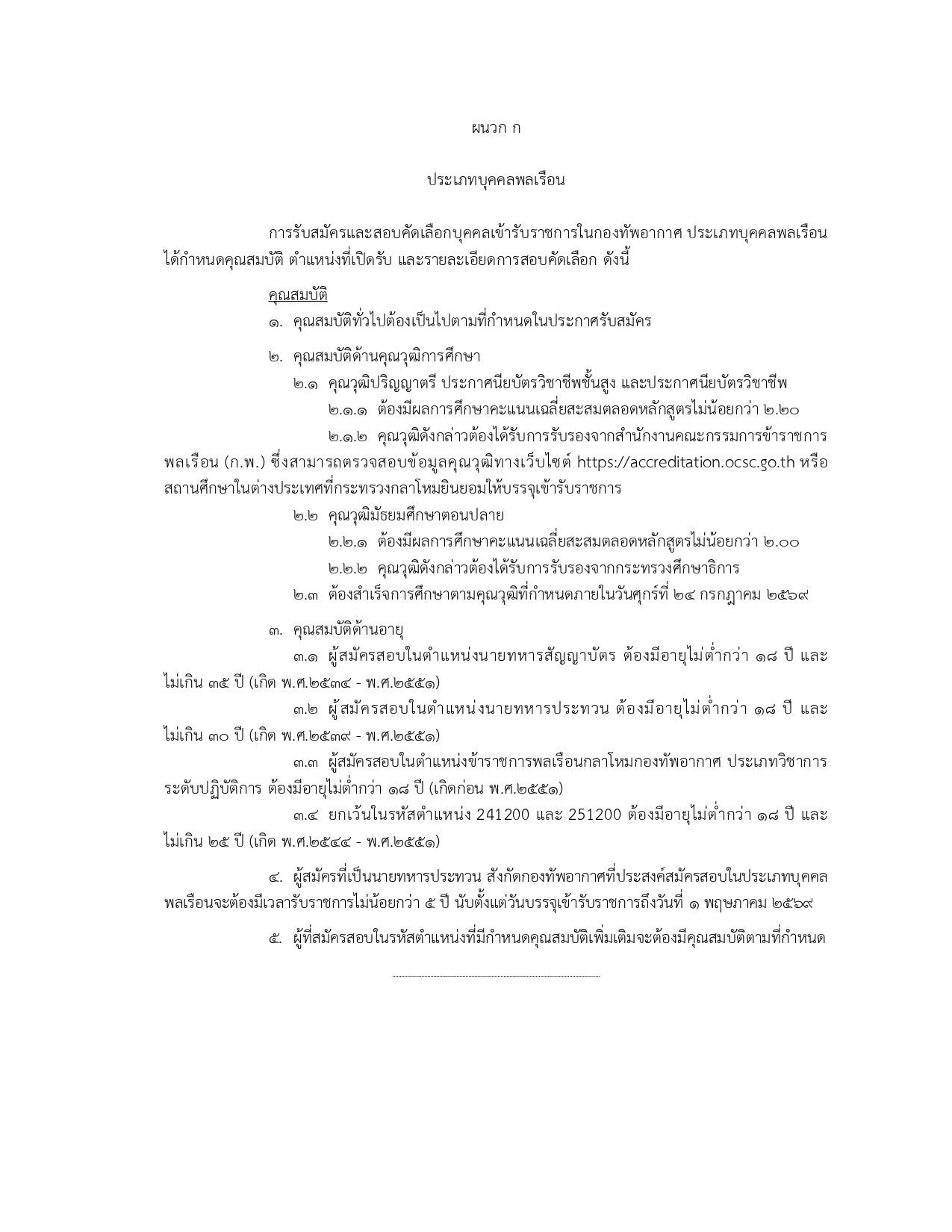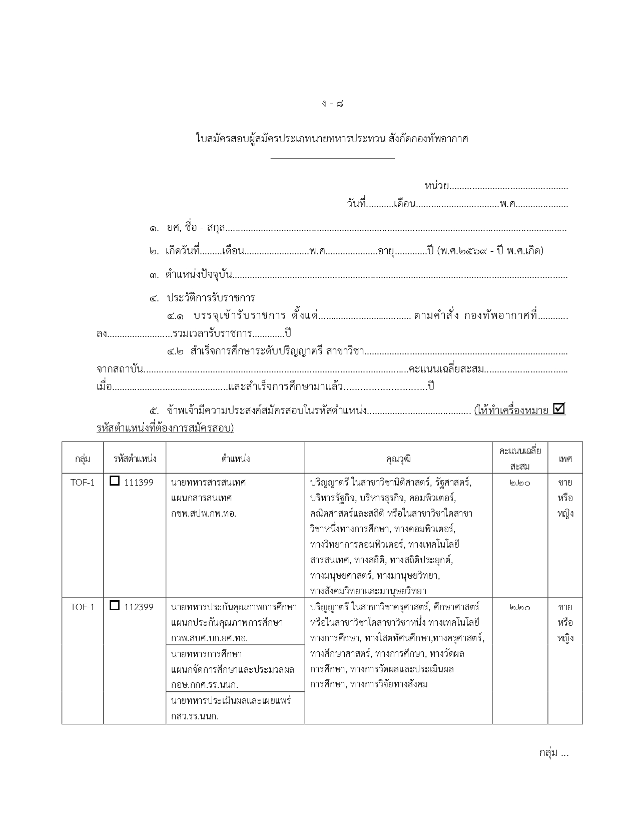 ข้าราชการในสังกัด ทอ. เดิม: เพื่อเลื่อนฐานะเป็นสัญญาบัตร 13 อัตรา และเปลี่ยนประเภทเป็นข้าราชการพลเรือนกลาโหม 5 อัตรา