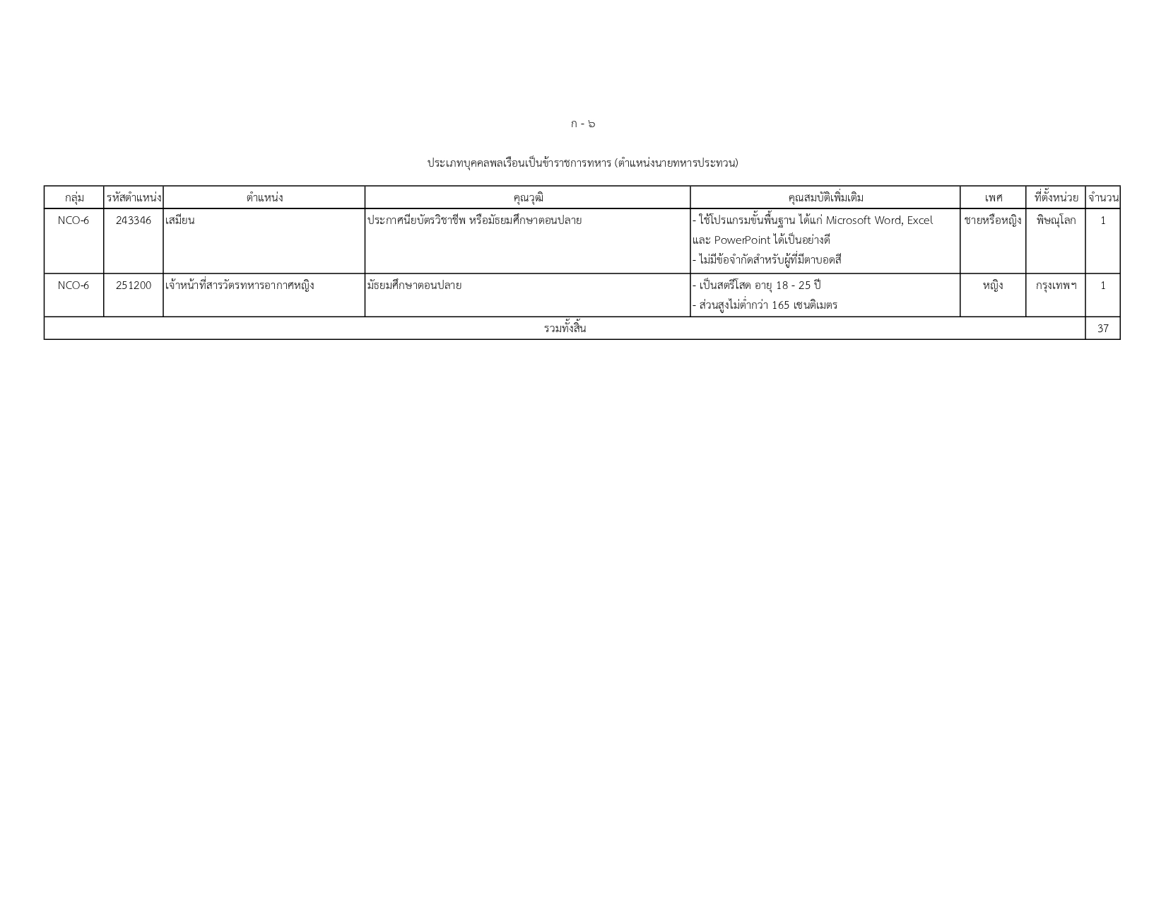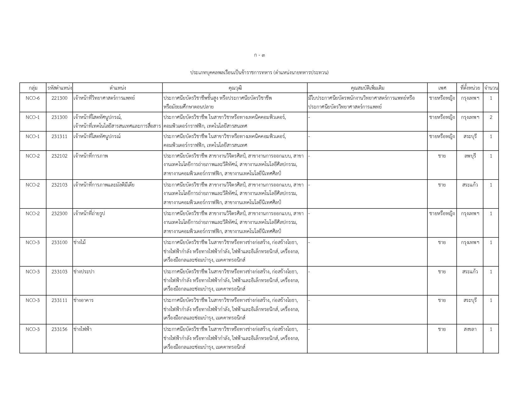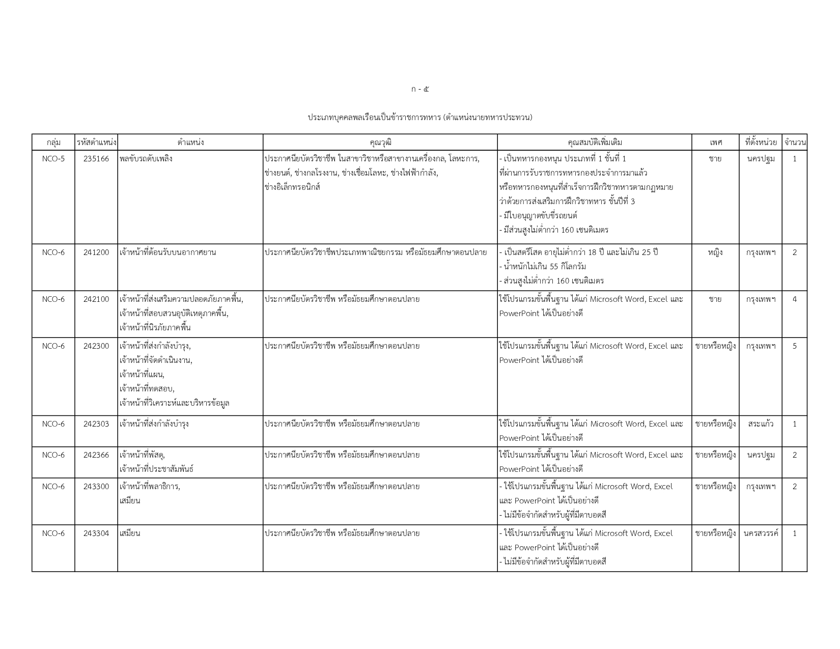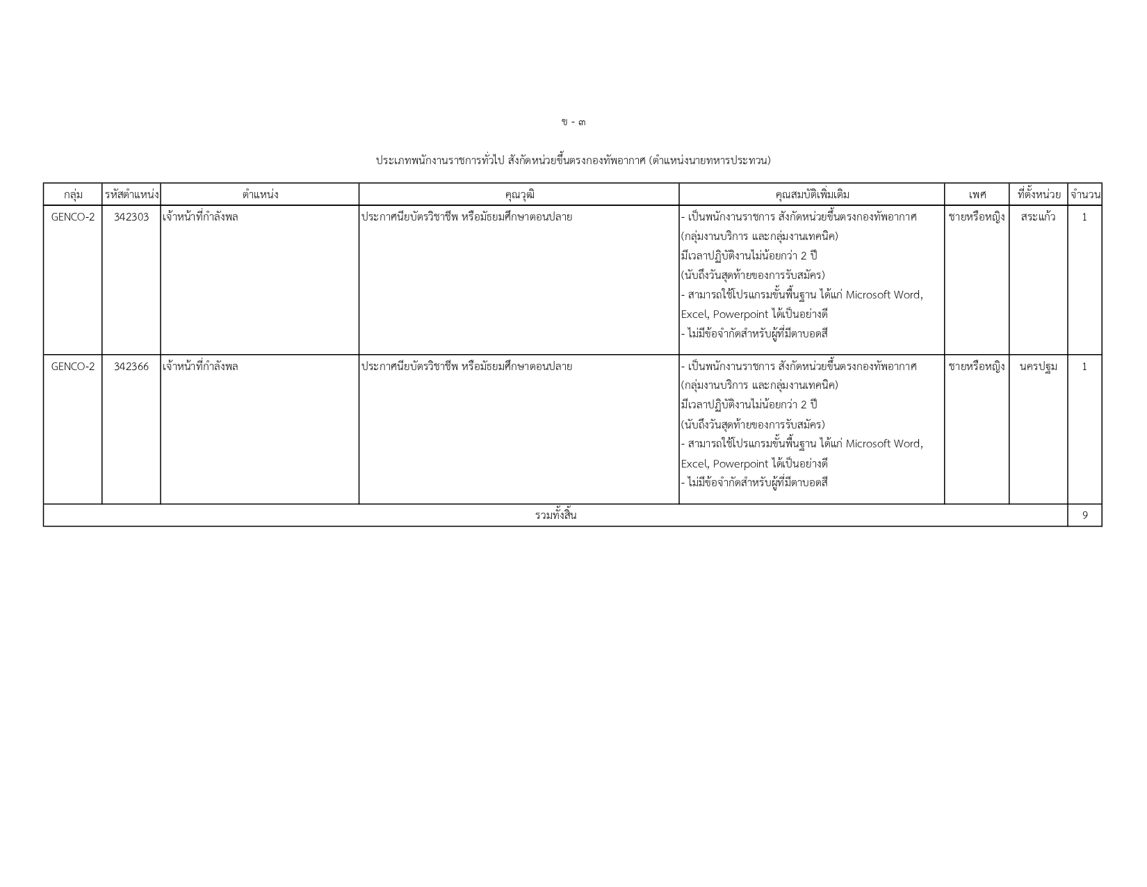 พนักงานราชการทั่วไป (สังกัด ทอ.): ตำแหน่งนายทหารประทวน 9 อัตรา