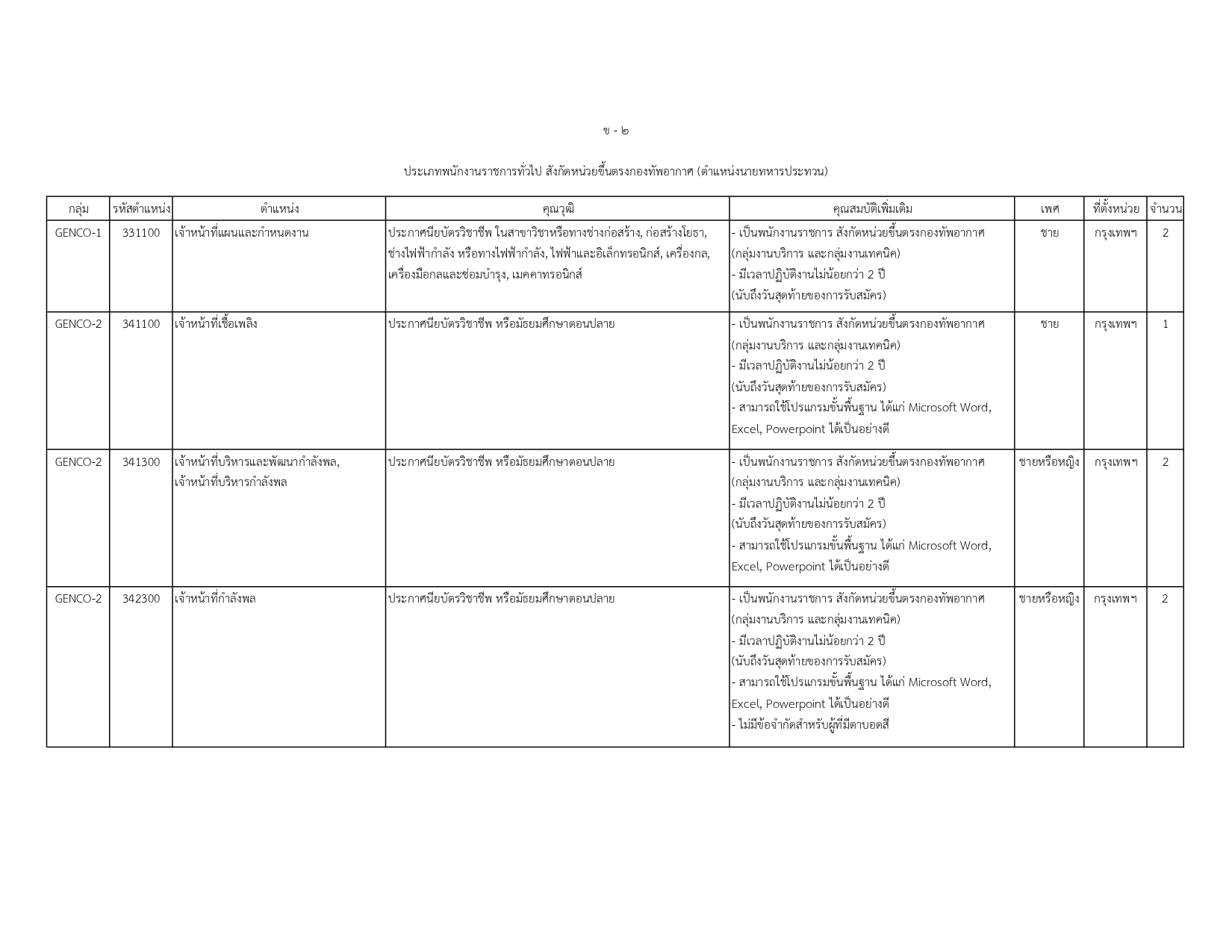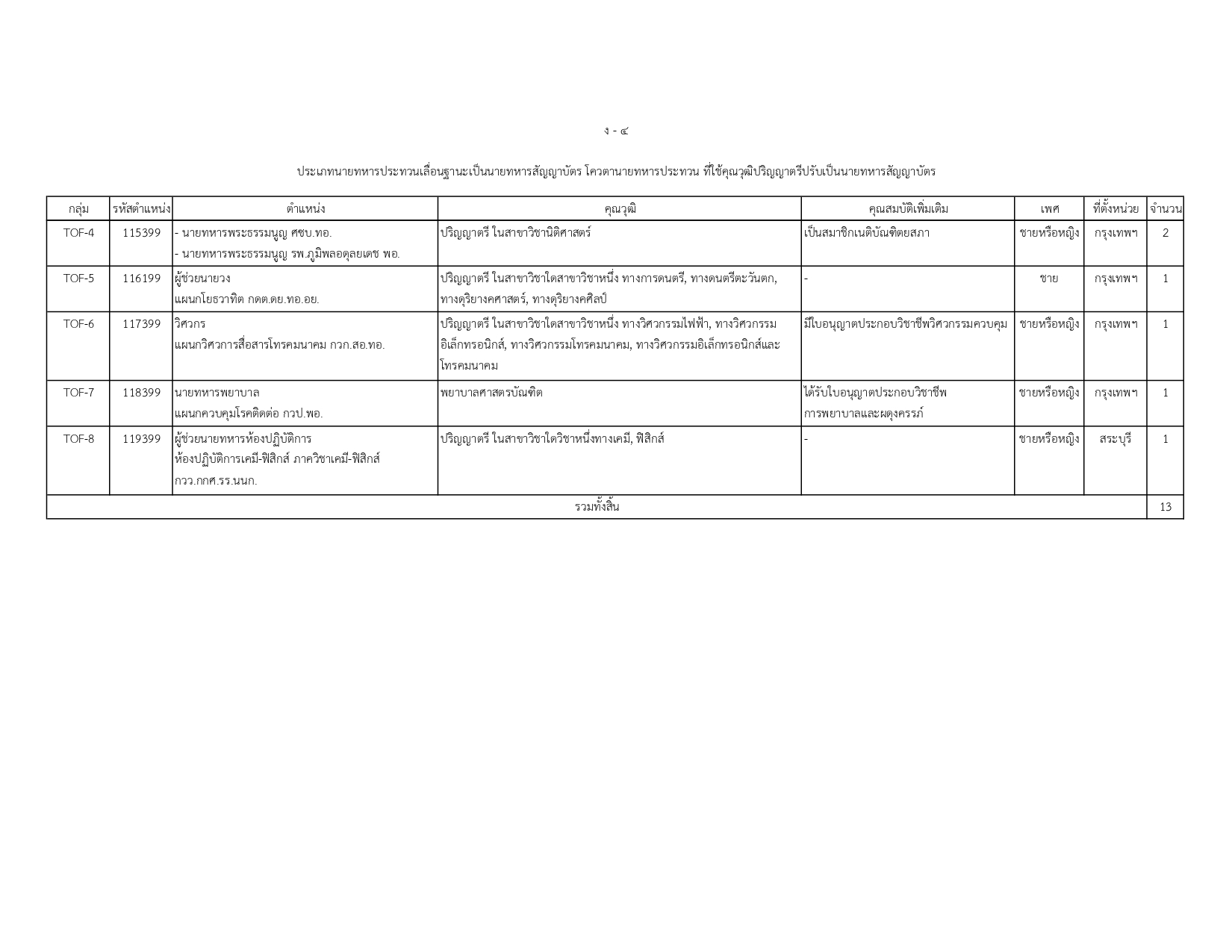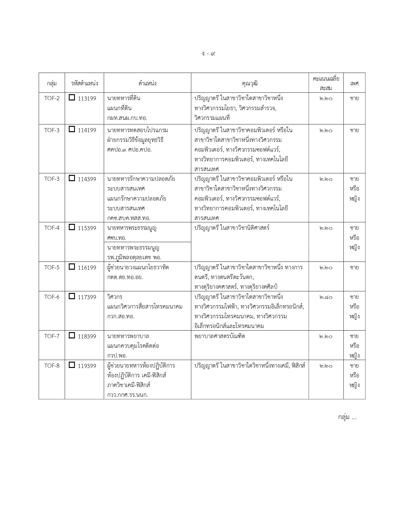 พนักงานราชการทั่วไป (สังกัด ทอ.): ตำแหน่งนายทหารประทวน 9 อัตรา