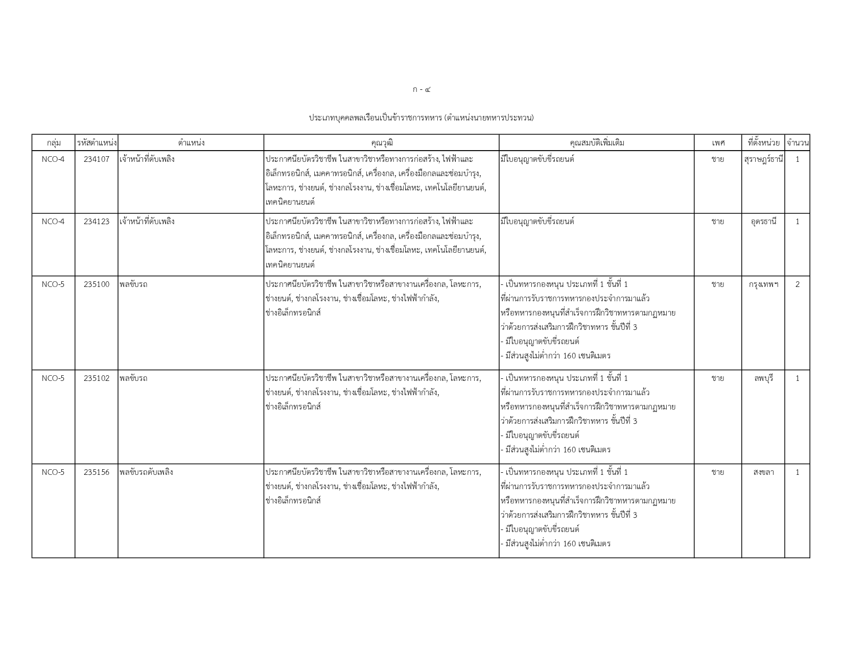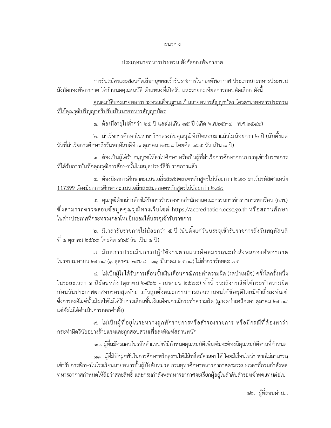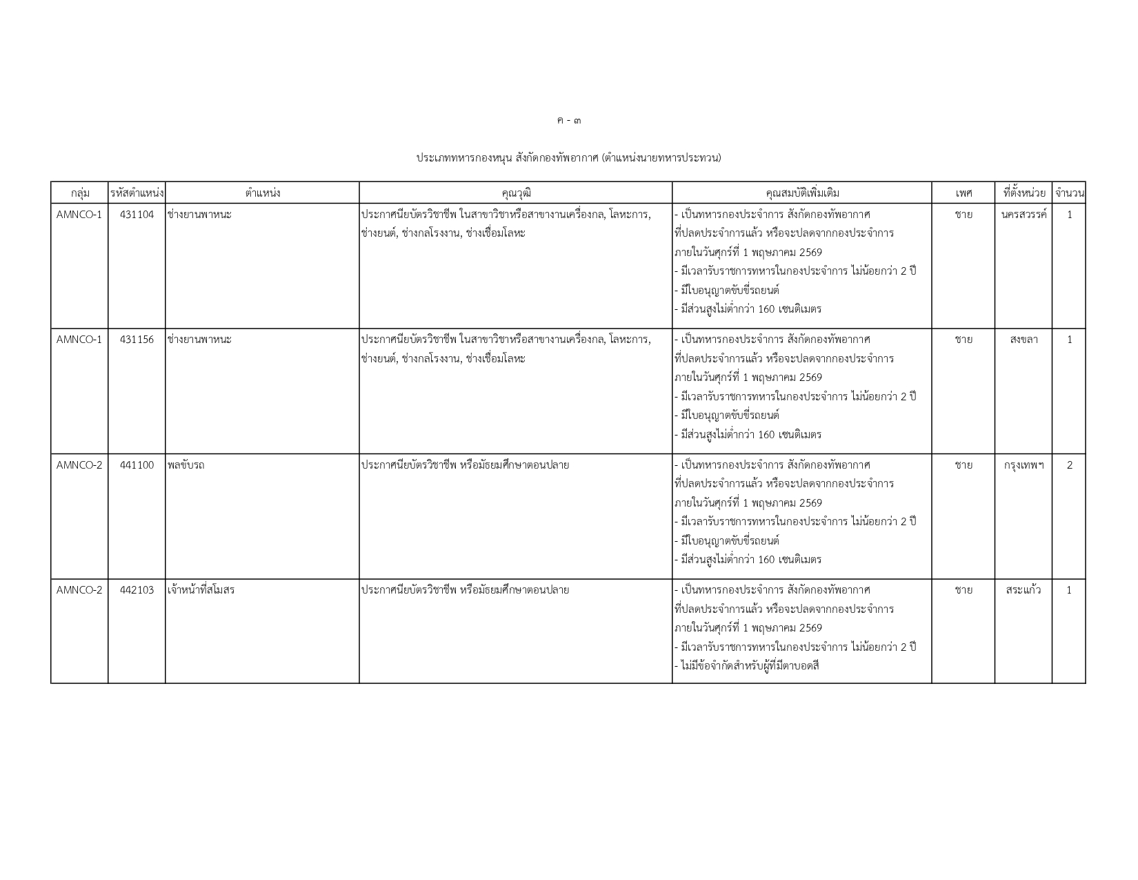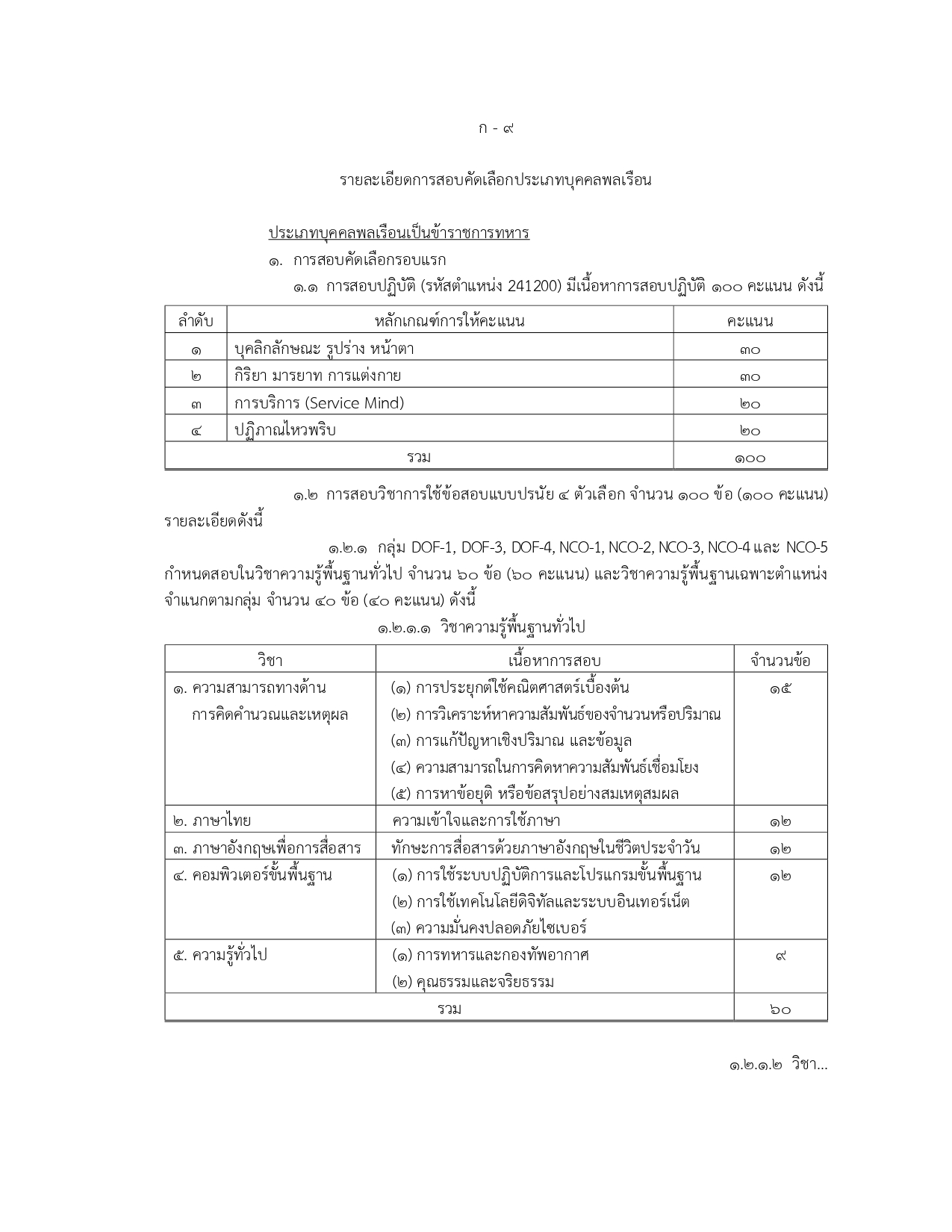พนักงานราชการทั่วไป (สังกัด ทอ.): ตำแหน่งนายทหารประทวน 9 อัตรา