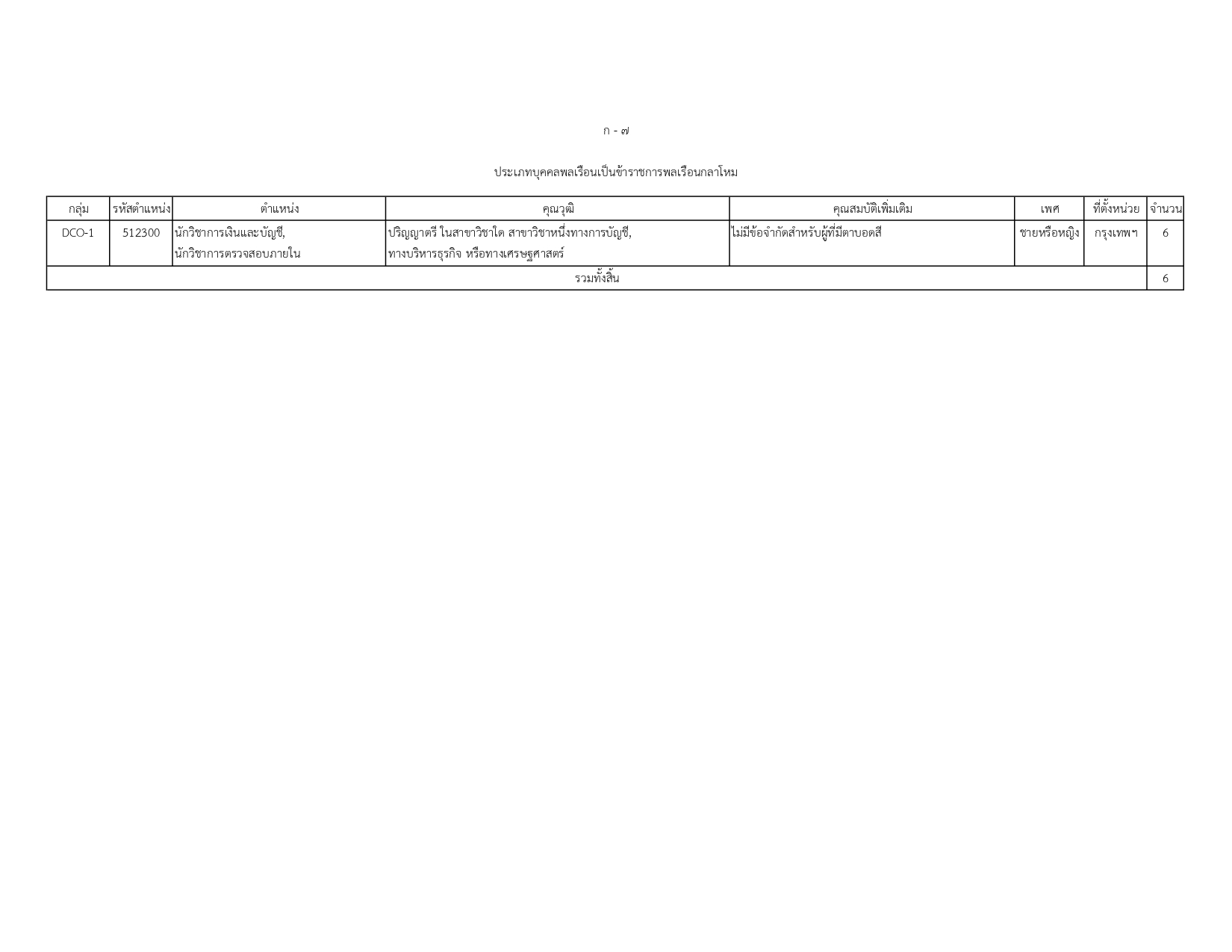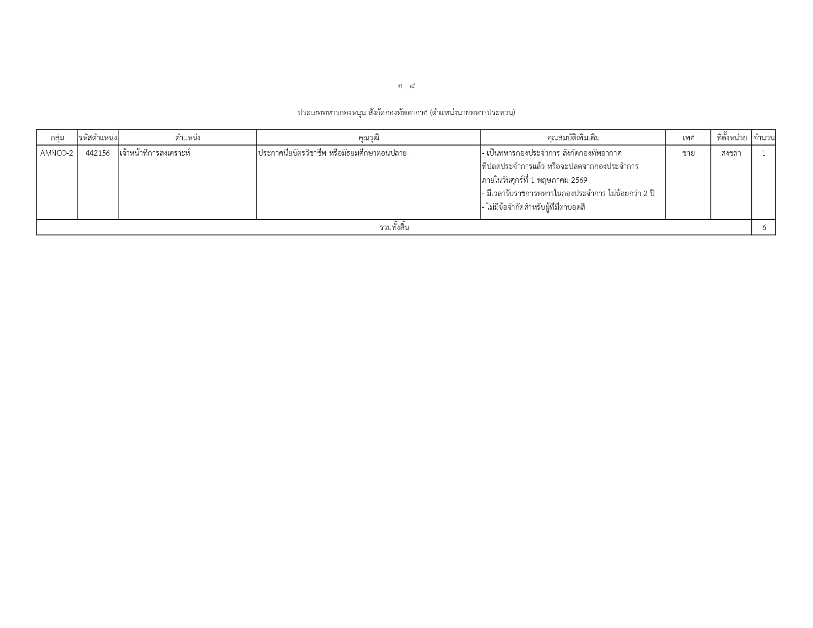 ข้าราชการพลเรือนกลาโหม: ประเภทวิชาการ 6 อัตรา
