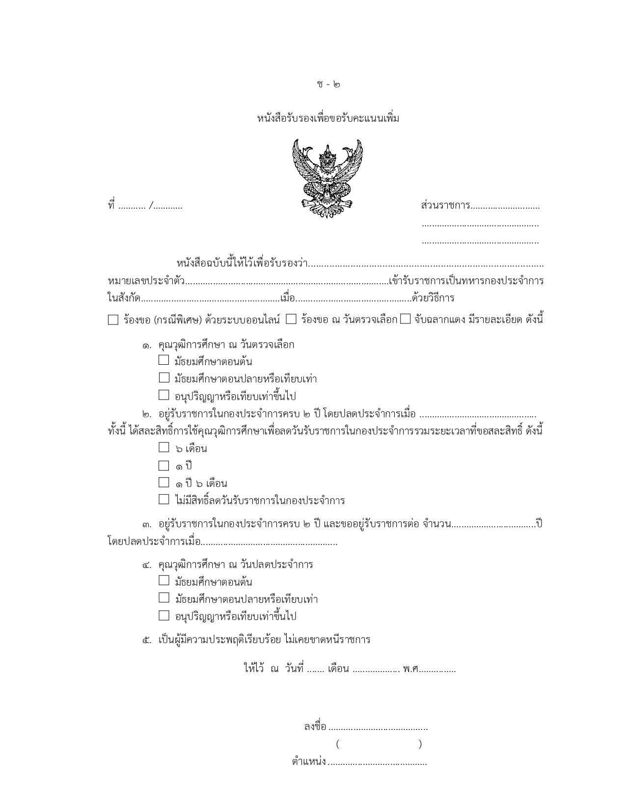 สำหรับเพศชาย: ต้องมีหลักฐานทางทหาร (สด.8, สด.3 หรือ สด.43) และต้องไม่อยู่ในระหว่างการผ่อนผันเกณฑ์ทหาร
