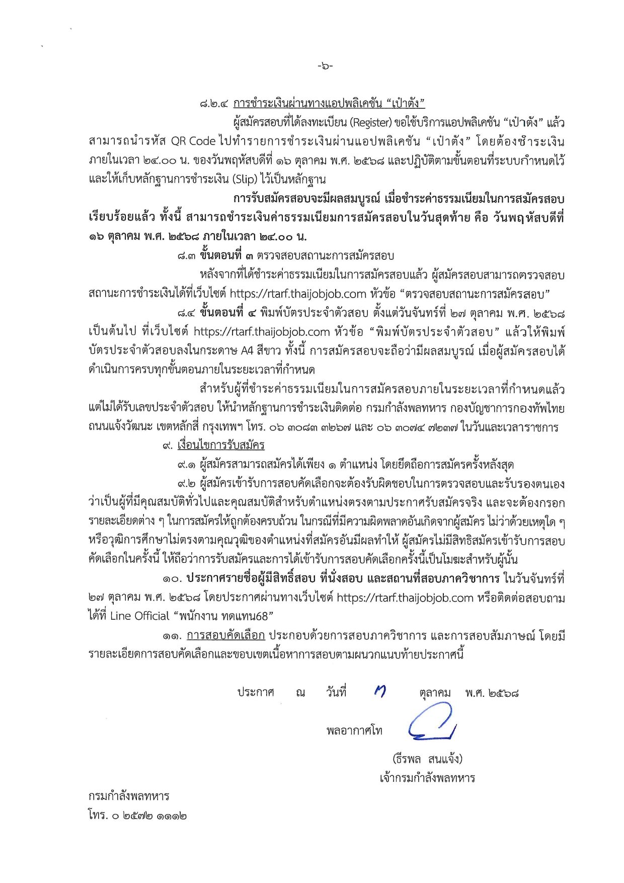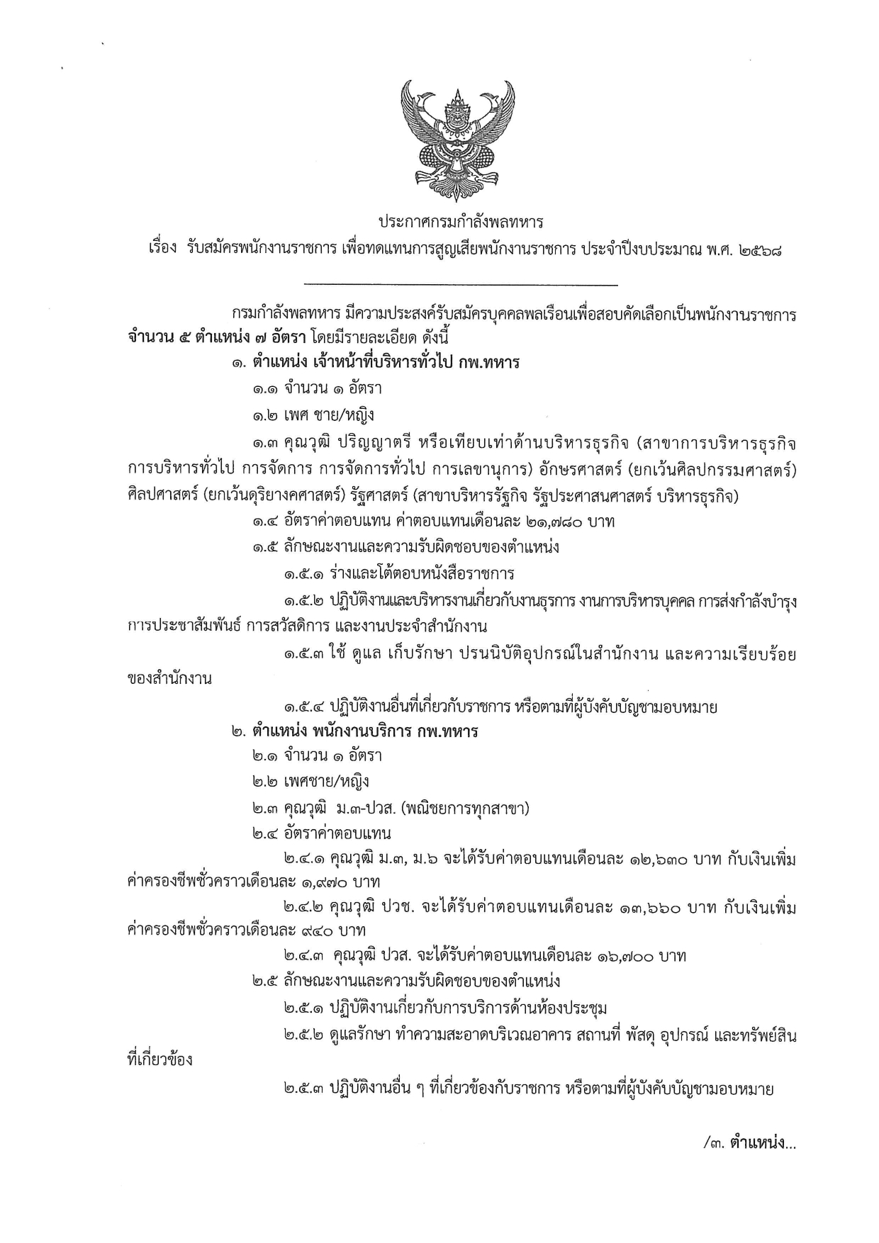 คลิกที่นี่เพื่ออ่าน ประกาศกรมกำลังพลทหาร เรื่อง รับสมัครพนักงานราชการ เพื่อทดแทนการสูญเสียพนักงานราชการ ประจำปีงบประมาณ พ.ศ. ๒๕๖๘