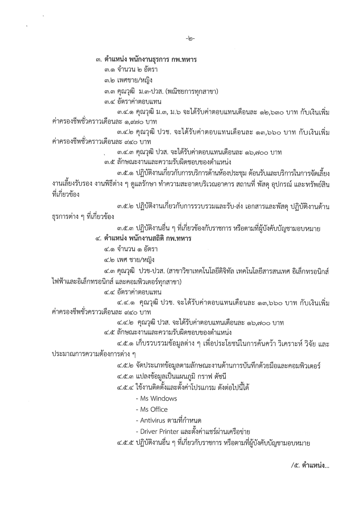 ตำแหน่ง พนักงานธุรการ กพ.ทหาร