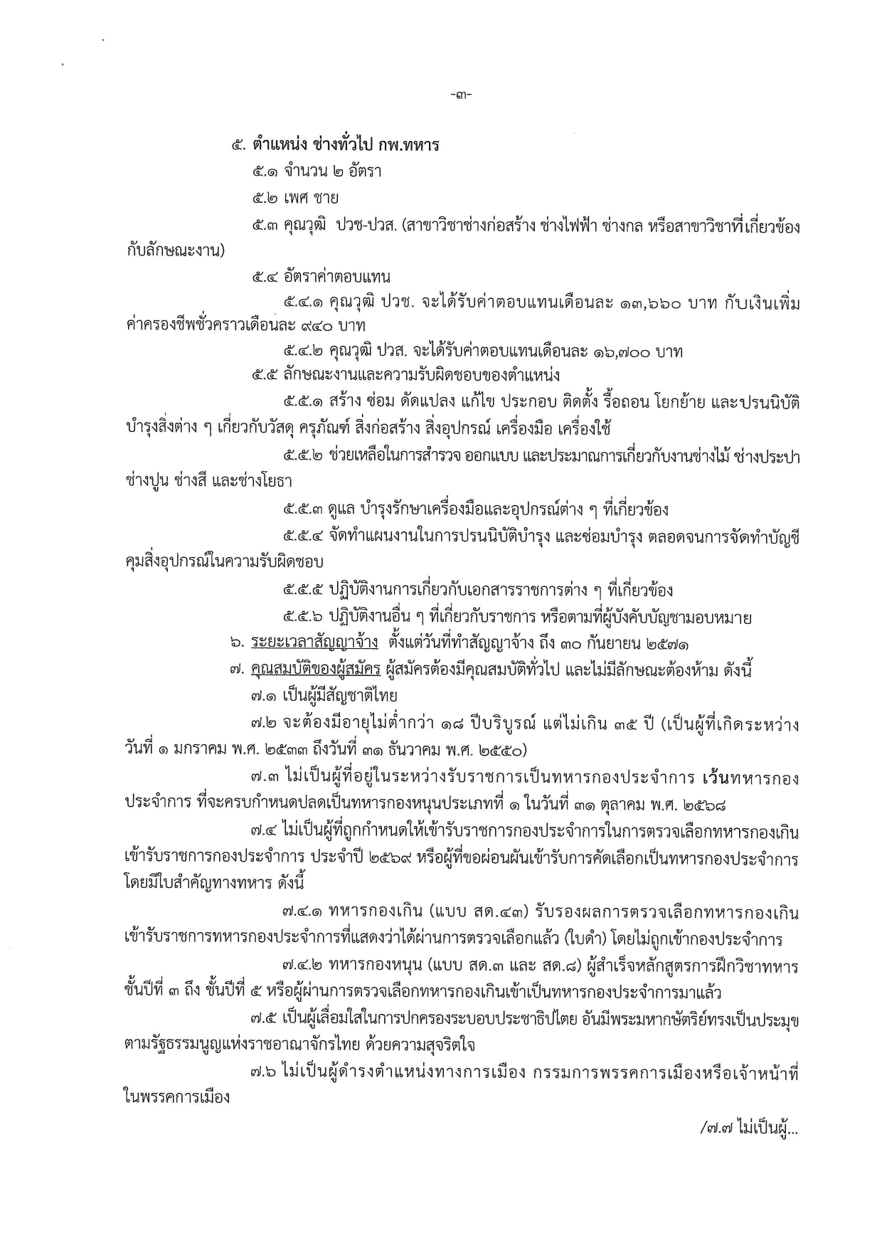 ตำแหน่ง ช่างทั่วไป กพ.ทหาร