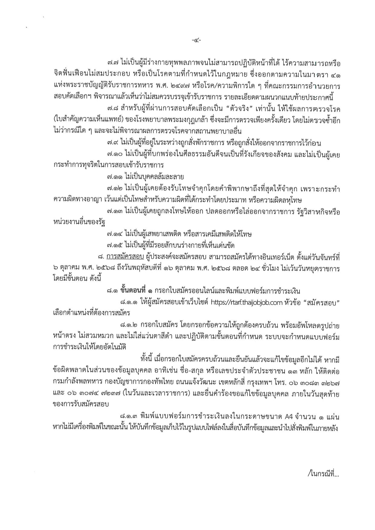 วิธีการสมัคร: สมัครได้ทางอินเทอร์เน็ตผ่านเว็บไซต์ https://rtarf.thaijobjob.com