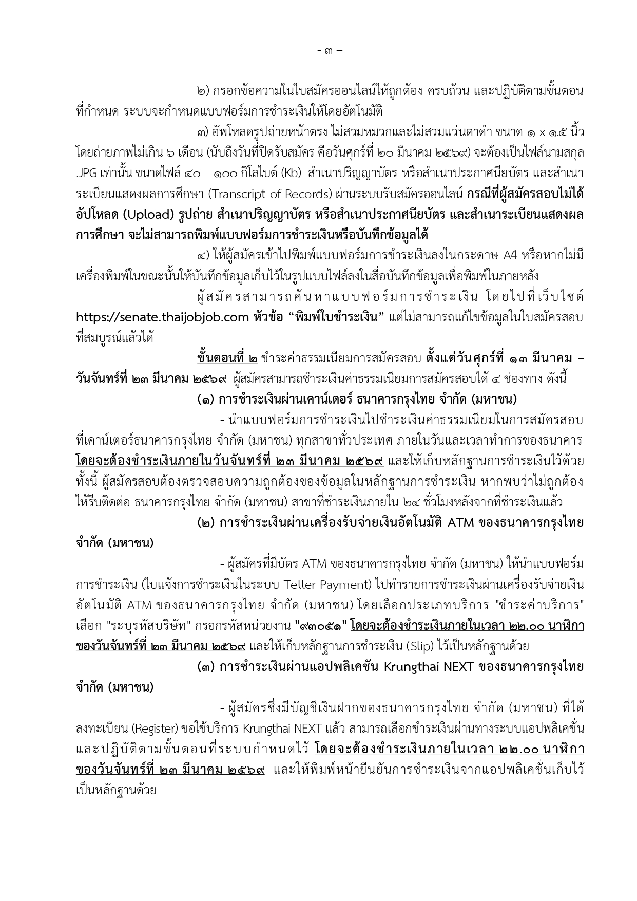 สมัครออนไลน์ที่เว็บไซต์ https://senate.thaijobjob.com