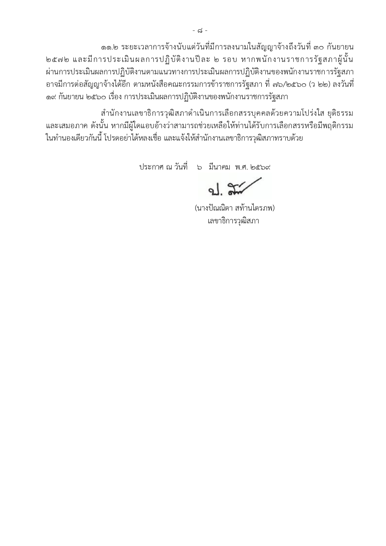 คลิกที่นี่เพื่ออ่าน ประกาศสำนักงานเลขาธิการวุฒิสภา เรื่อง รับสมัครบุคคลเพื่อเลือกสรรเป็นพนักงานราชการรัฐสภาทั่วไป ประจำปี พ.ศ. ๒๕๖๙