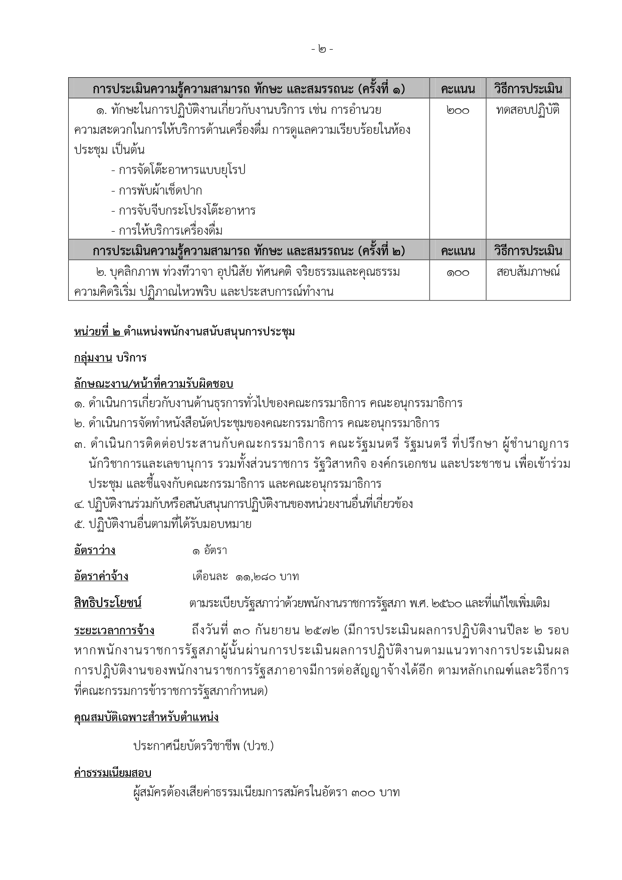 1. กลุ่มงานบริการ (2 ตำแหน่ง)