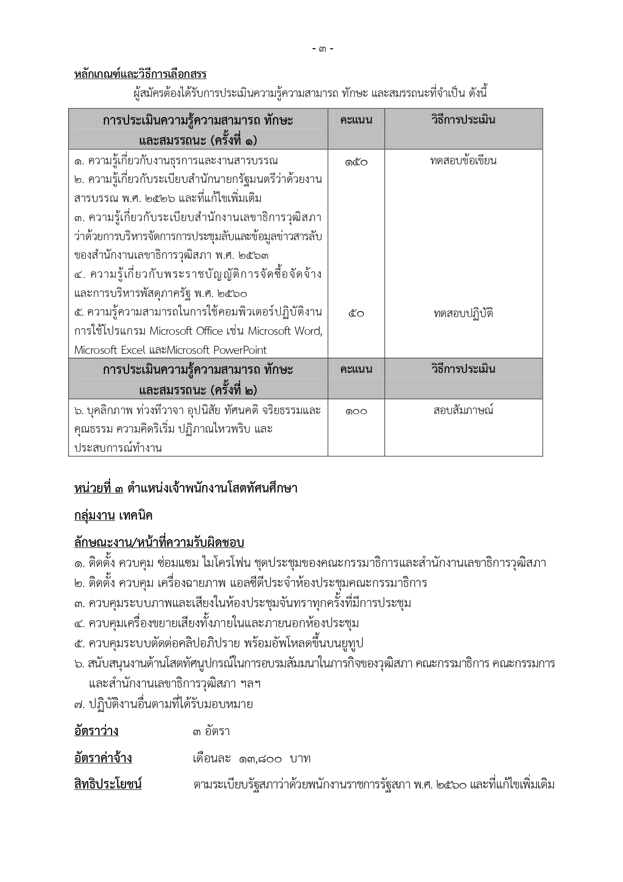 ประกาศรับสมัครบุคคลเพื่อเลือกสรรเป็นพนักงานราชการรัฐสภาทั่วไป