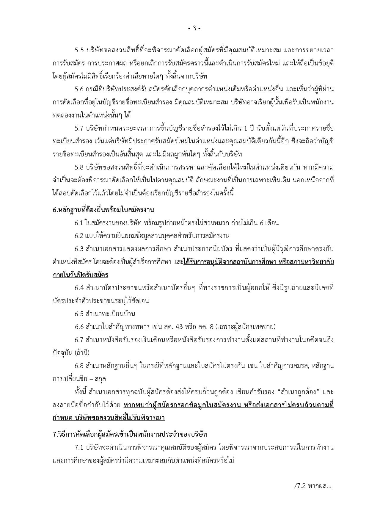 (ผู้สมัครต้องมีคุณสมบัติทั่วไป เช่น สัญชาติไทย อายุ 18-60 ปีบริบูรณ์ เพศชายต้องพ้นภาระทางทหาร และไม่มีลักษณะต้องห้ามตามที่บริษัทกำหนด)