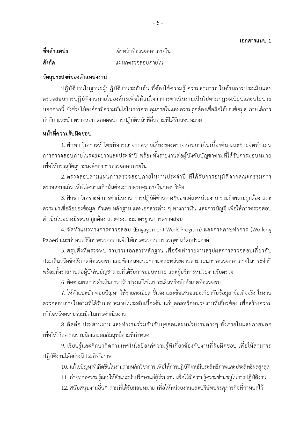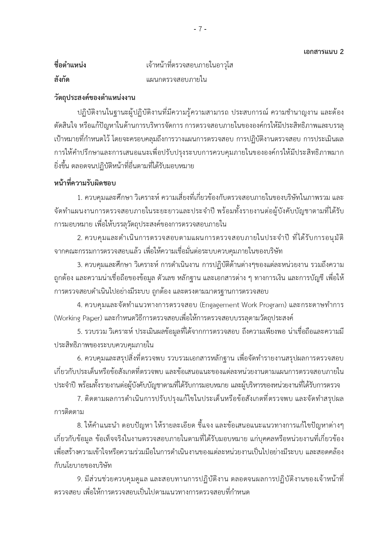 ตำแหน่ง: เจ้าหน้าที่ตรวจสอบภายใน / เจ้าหน้าที่ตรวจสอบภายในอาวุโส