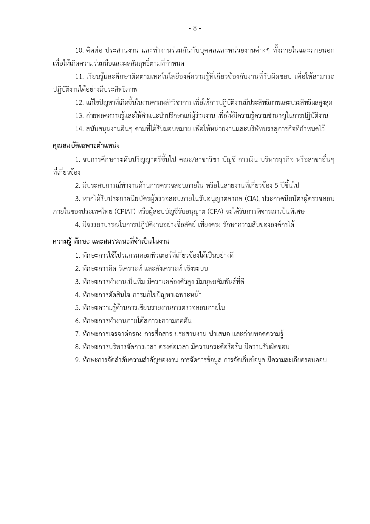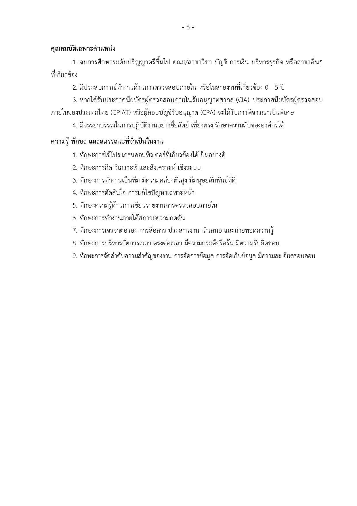 สำหรับตำแหน่งระดับอาวุโส: มีประสบการณ์ทำงานด้านการตรวจสอบภายใน หรือสายงานที่เกี่ยวข้อง 5 ปีขึ้นไป