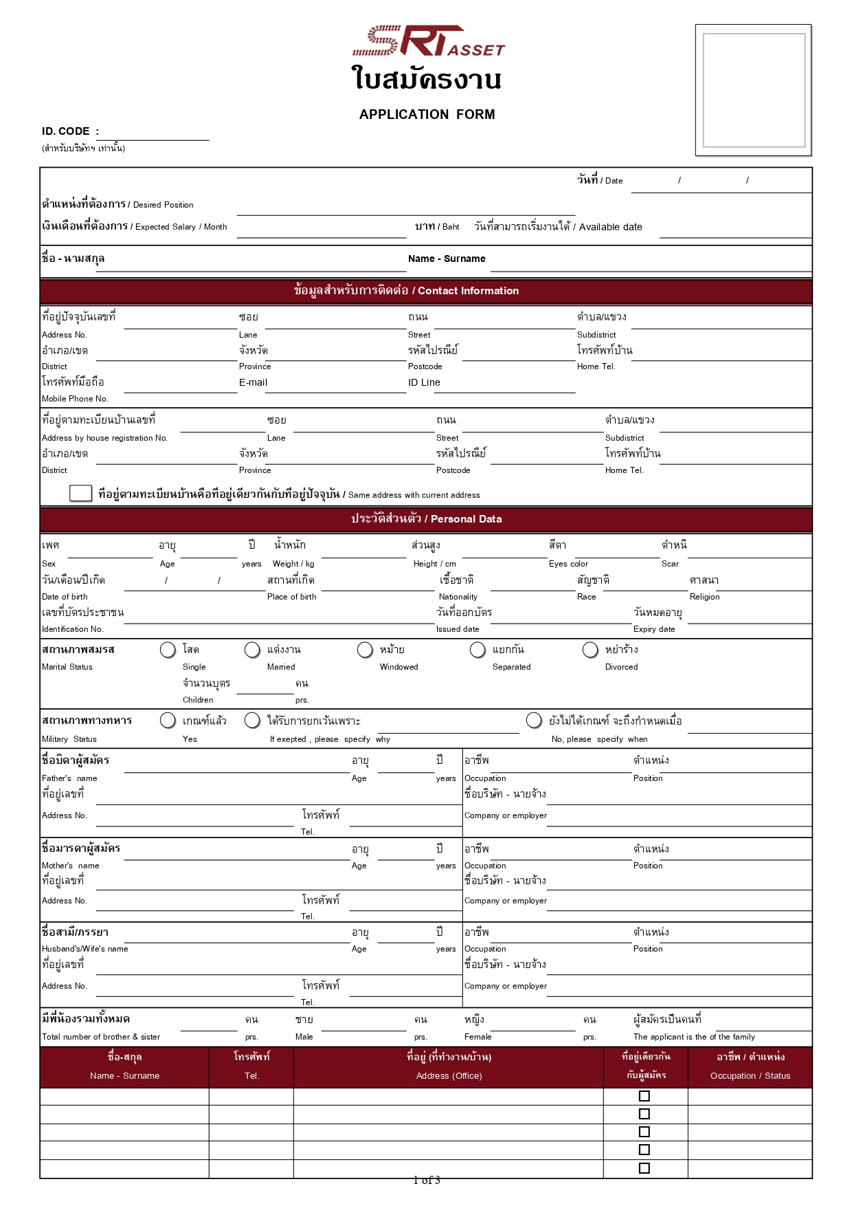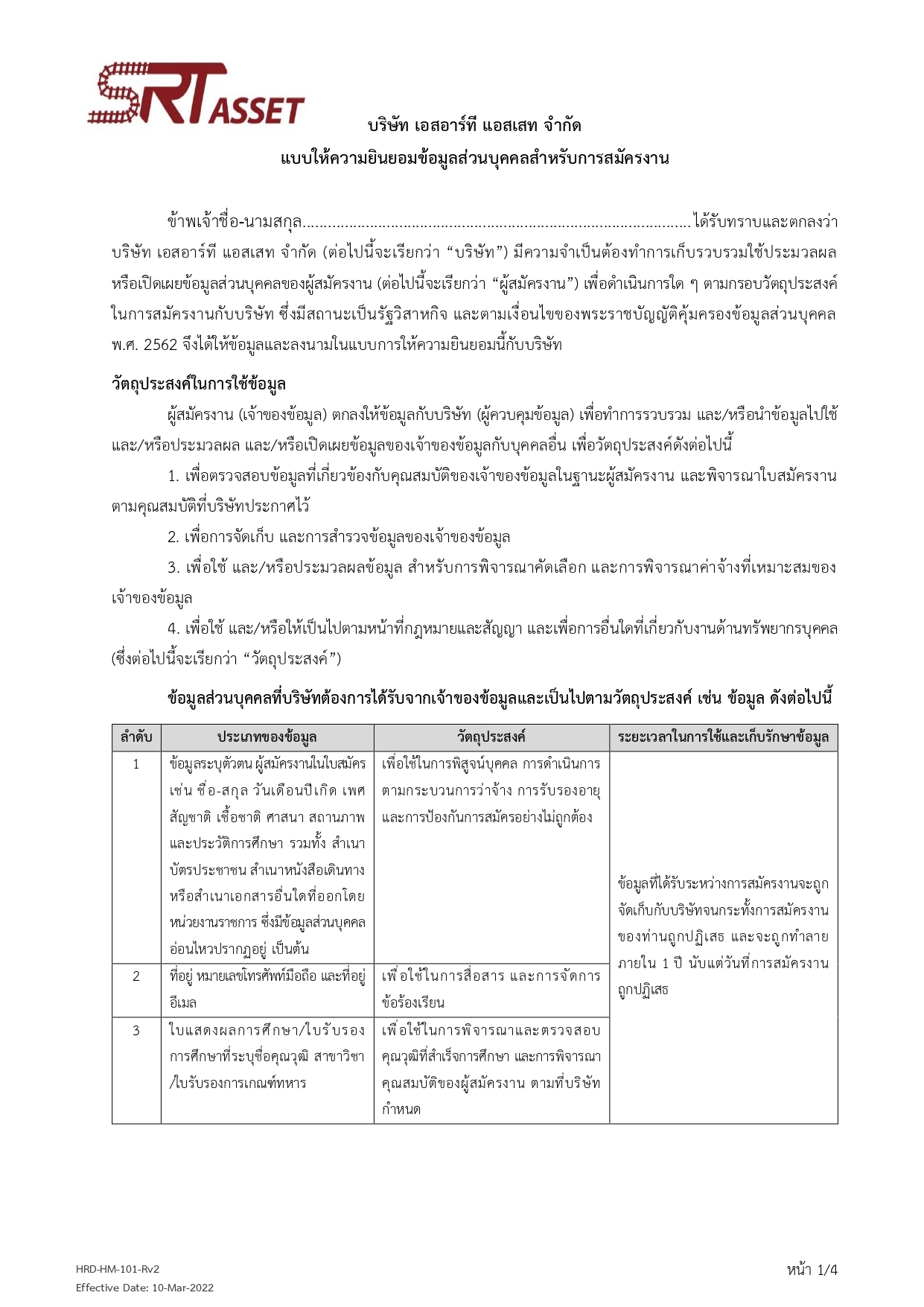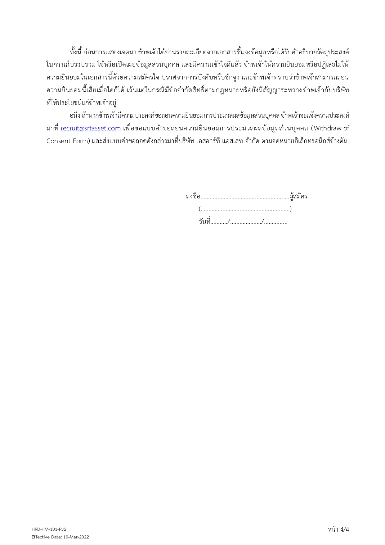 สามารถดาวน์โหลดใบสมัครงานผ่านทางเว็บไซต์ www.srtasset.com