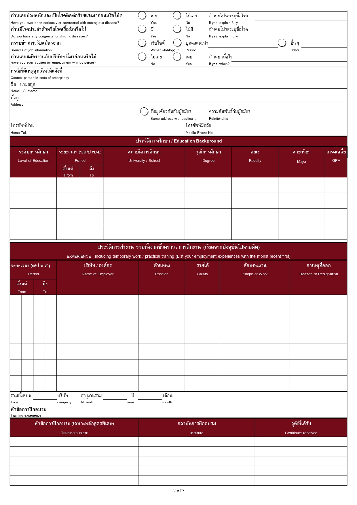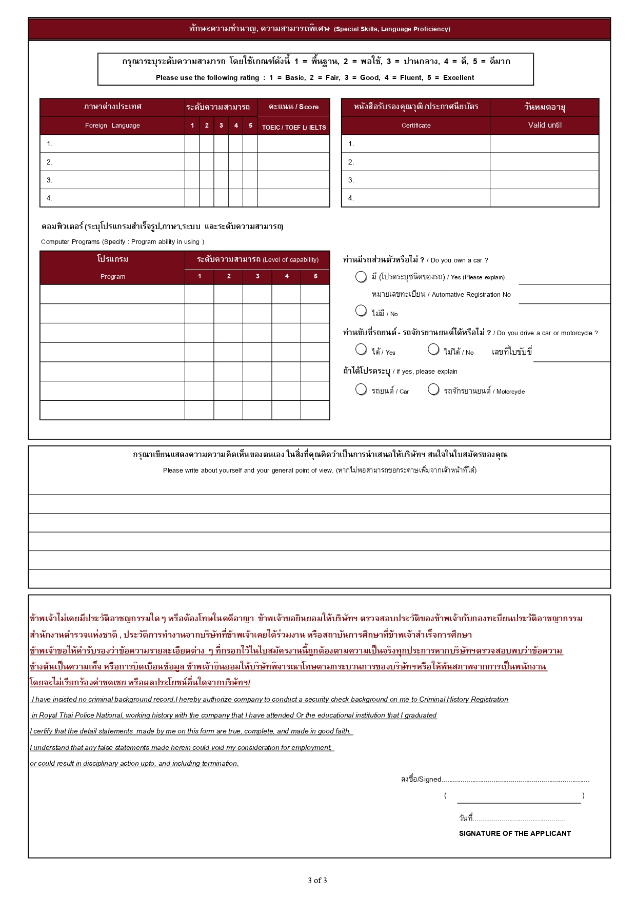 วิธีการส่งใบสมัคร: ให้ผู้สมัครกรอกข้อมูลในใบสมัครให้ครบถ้วน