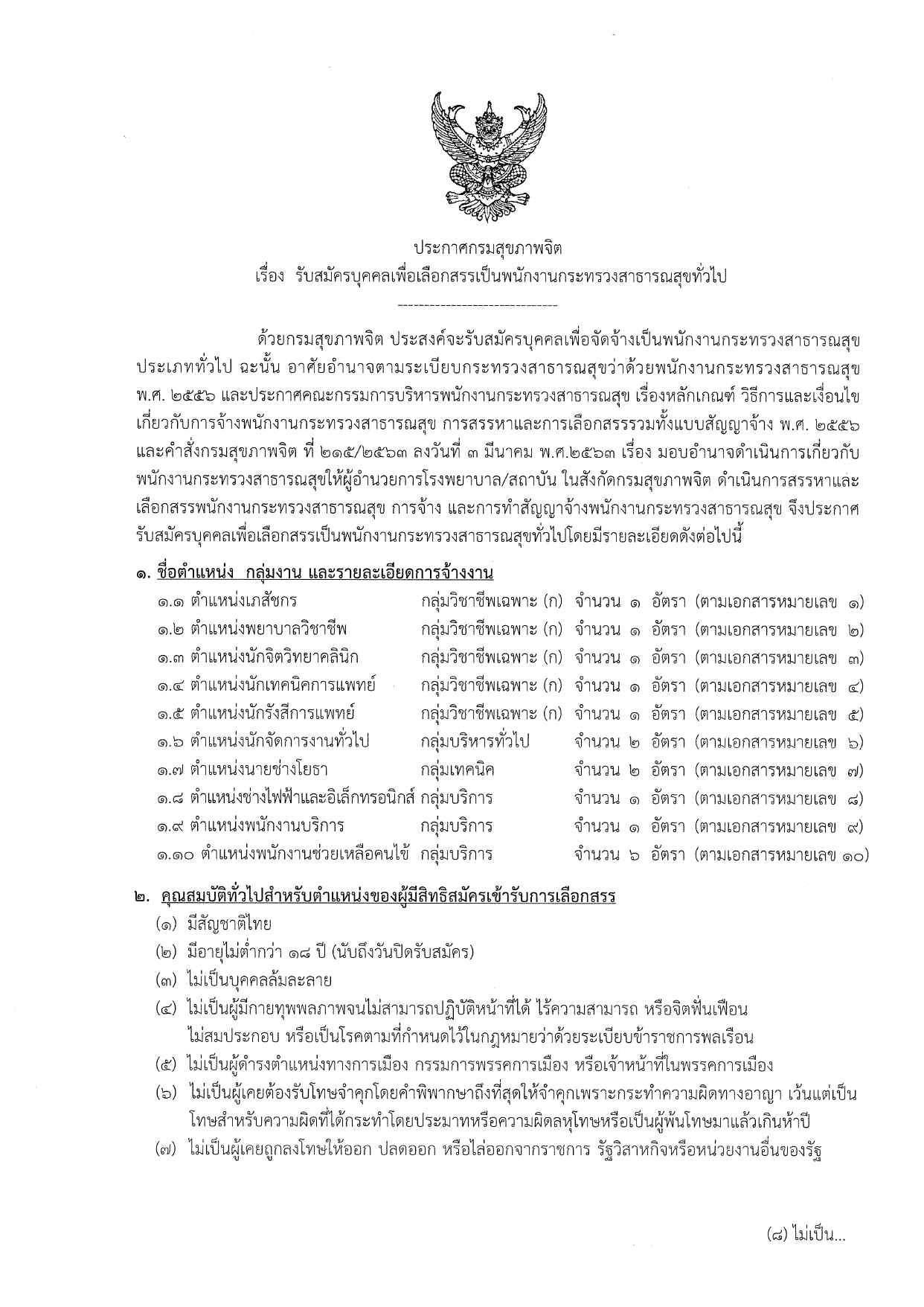 เรื่อง: รับสมัครบุคคลเพื่อเลือกสรรเป็นพนักงานกระทรวงสาธารณสุขทั่วไป