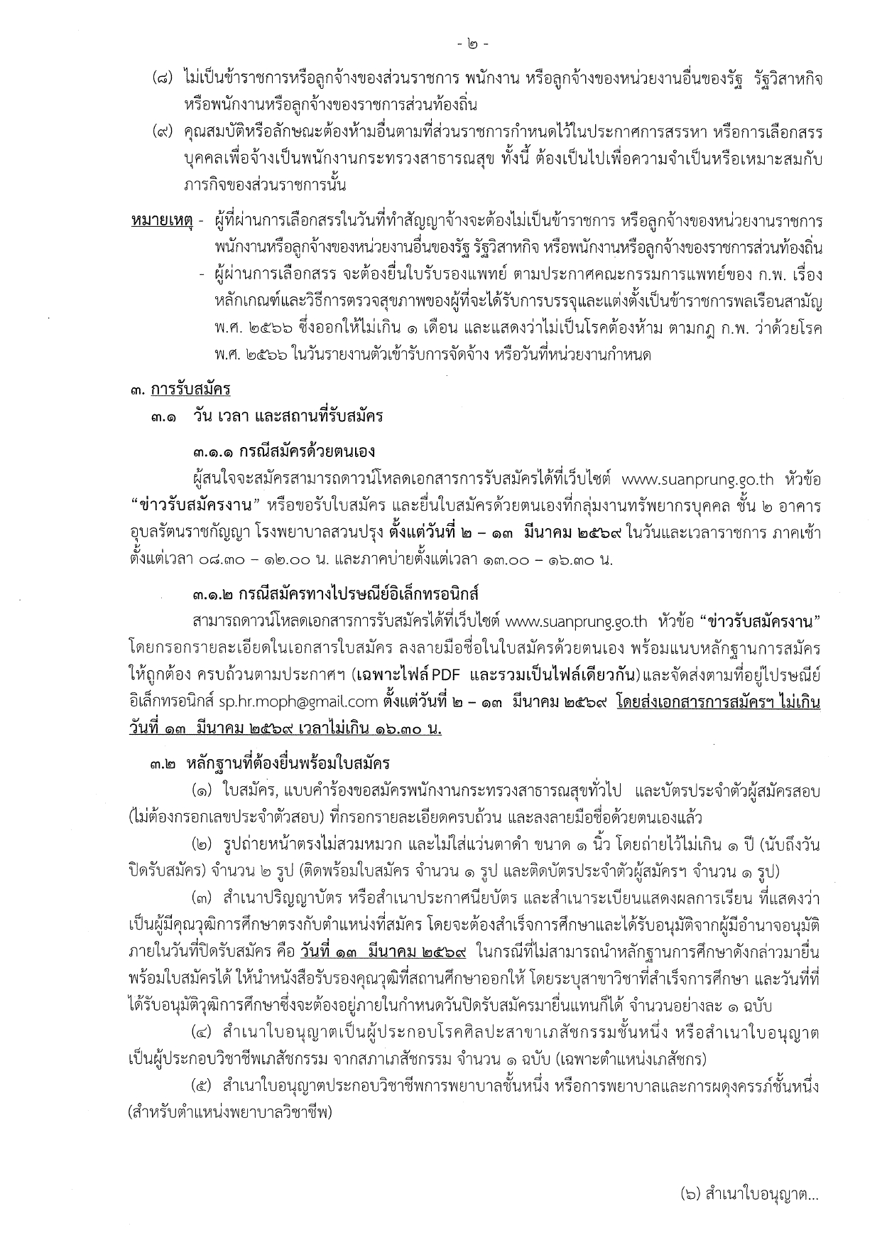 สมัครด้วยตนเอง: ยื่นใบสมัครได้ที่ กลุ่มงานทรัพยากรบุคคล ชั้น 2 อาคารอุบลรัตนราชกัญญา โรงพยาบาลสวนปรุง จ.เชียงใหม่