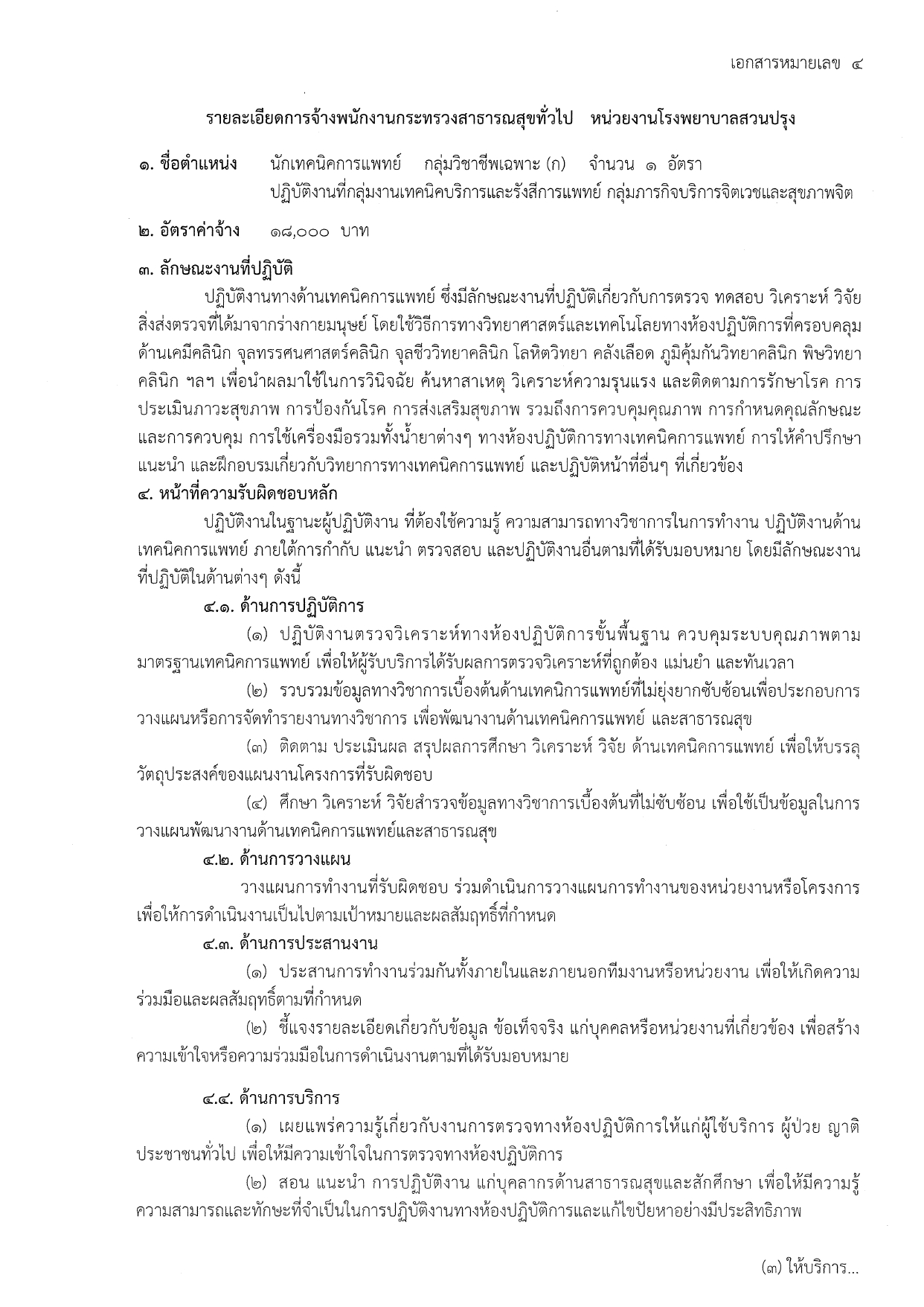 นักเทคนิคการแพทย์ (1 อัตรา) | ค่าจ้าง: 18,000 บาท