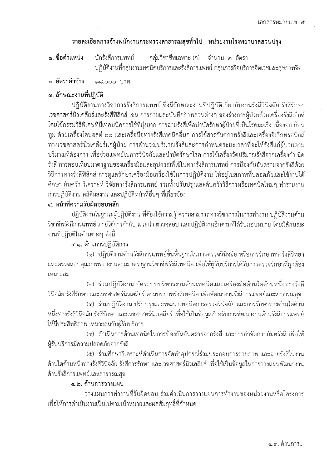นักรังสีการแพทย์ (1 อัตรา) | ค่าจ้าง: 18,000 บาท