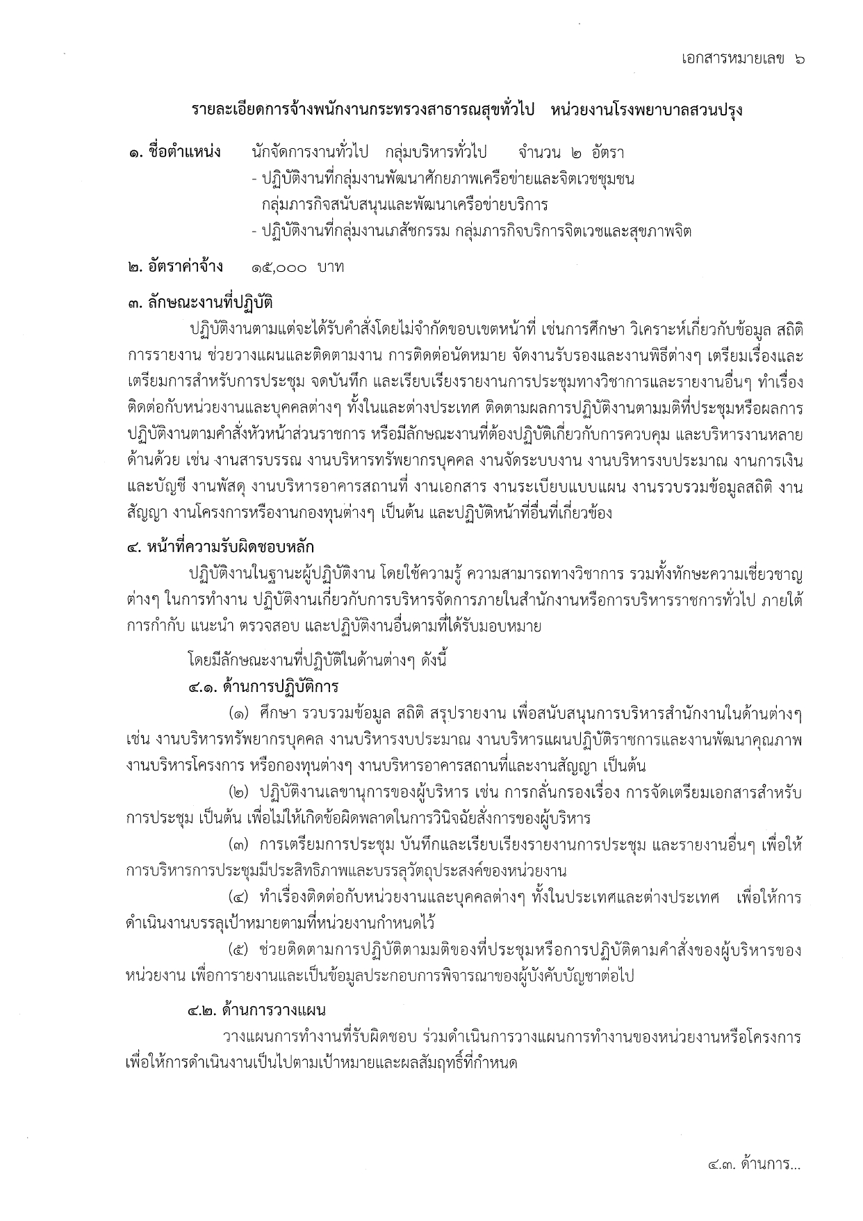 นักจัดการงานทั่วไป (2 อัตรา) | ค่าจ้าง: 15,000 บาท