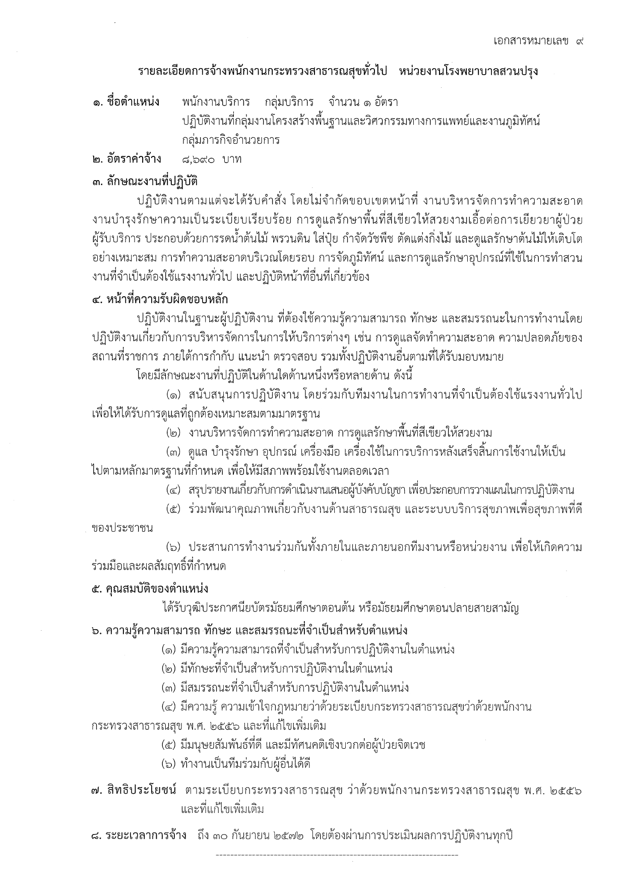 พนักงานบริการ (6 อัตรา) | ค่าจ้าง: 8,690 บาท