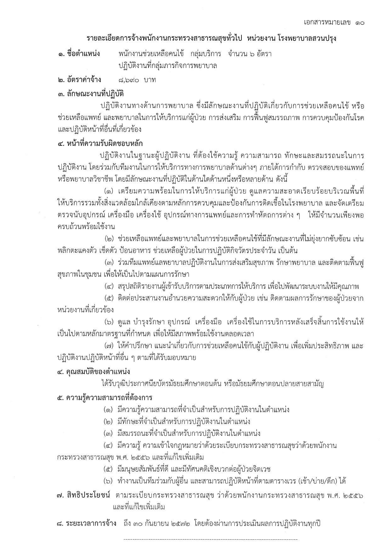 พนักงานช่วยเหลือคนไข้ (5 อัตรา) | ค่าจ้าง: 8,690 บาท