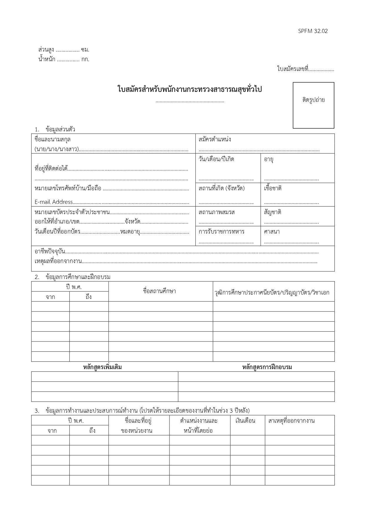 หมายเหตุ: ในวันที่ทำสัญญาจ้าง ต้องไม่เป็นข้าราชการ พนักงาน หรือลูกจ้างของหน่วยงานรัฐอื่น