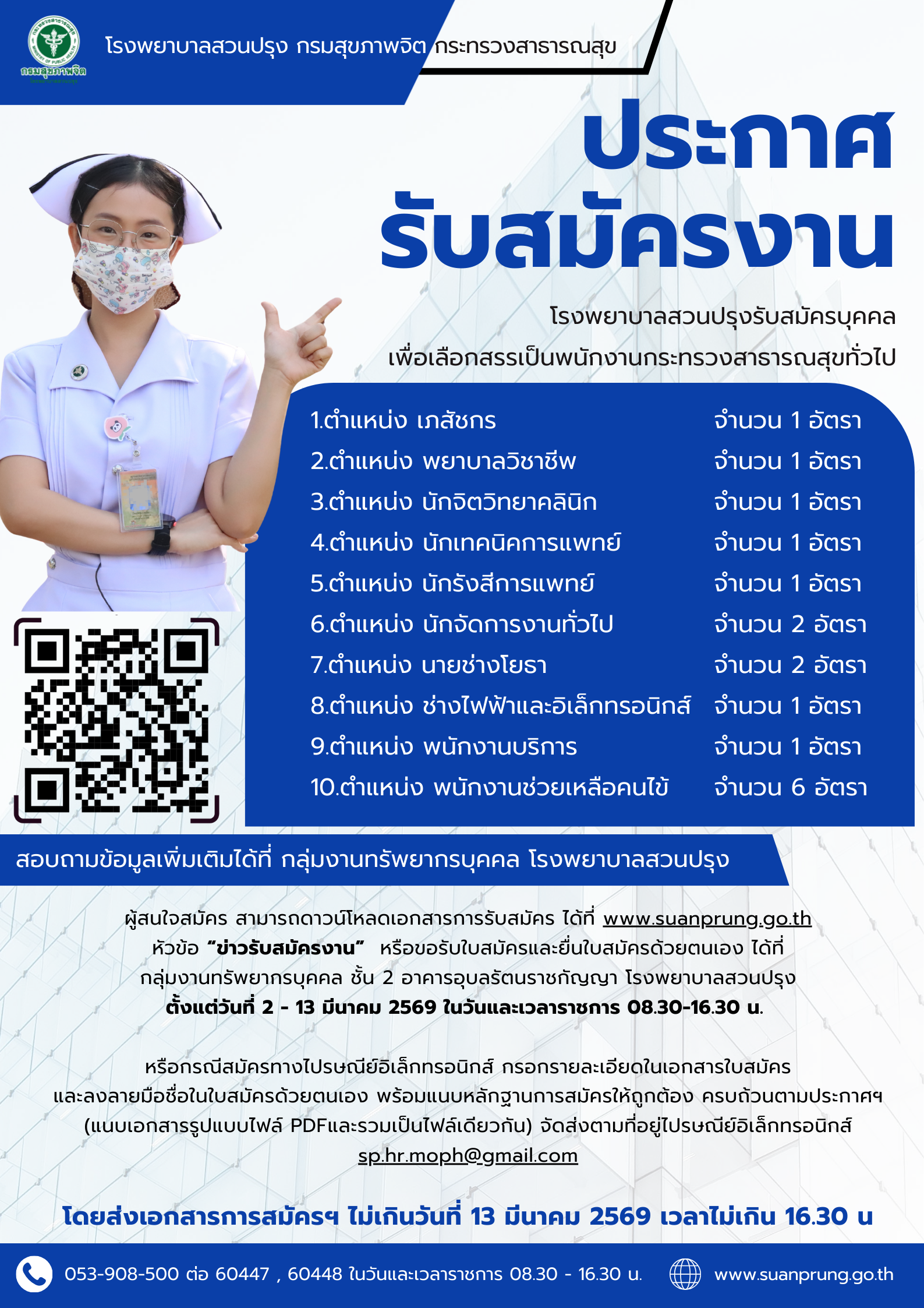 🏥 ประกาศรับสมัครงาน: โรงพยาบาลสวนปรุง กรมสุขภาพจิต
