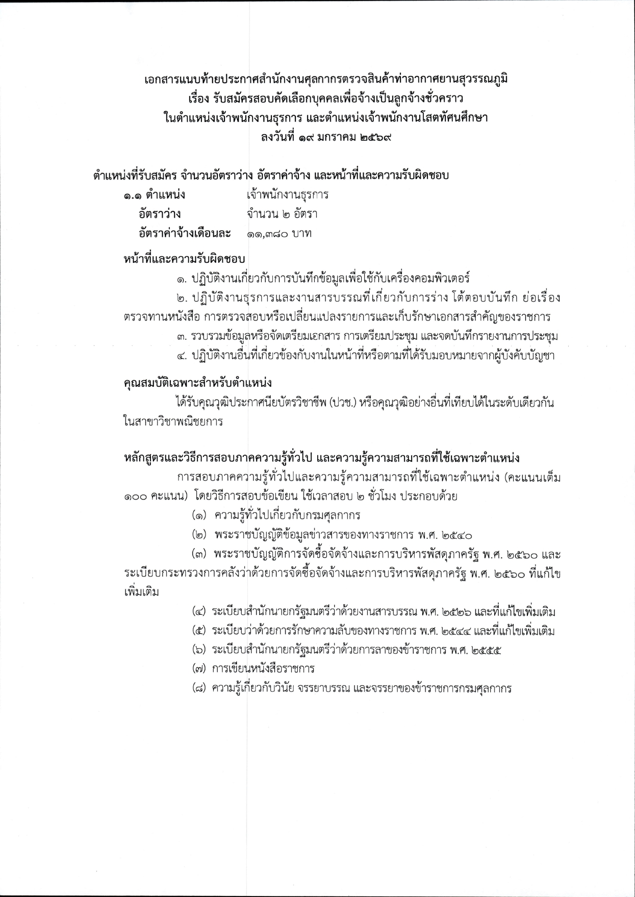 สำนักงานศุลกากรตรวจสินค้าท่าอากาศยานสุวรรณภูมิ เปิดสอบงาน ปวช. และ ปวส. หลายสาขา / ไม่ต้องผ่าน ภาค ก. / สมัคร 26 มกราคม – 6 กุมภาพันธ์ 2569