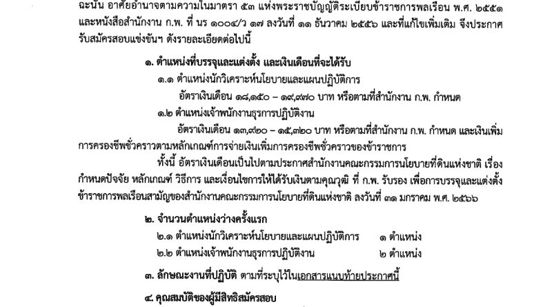 สำนักงานคณะกรรมการนโยบายที่ดินแห่งชาติ รับสมัครสอบแข่งขันเพื่อบรรจุและแต่งตั้งบุคคลเข้ารับราชการ ปวส. และ ป.ตรี หลายสาขา / ไม่ต้องผ่าน ภาค ก ของ กพ. สามารถสมัครได้ / เงินเดือน 18150 / ตั้งแต่ 4 มีนาคม – 24 มีนาคม 2569