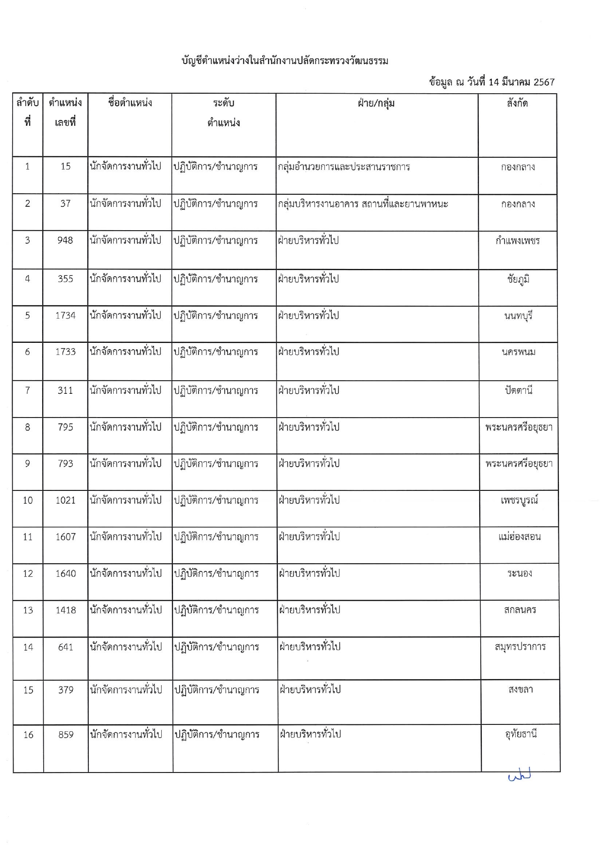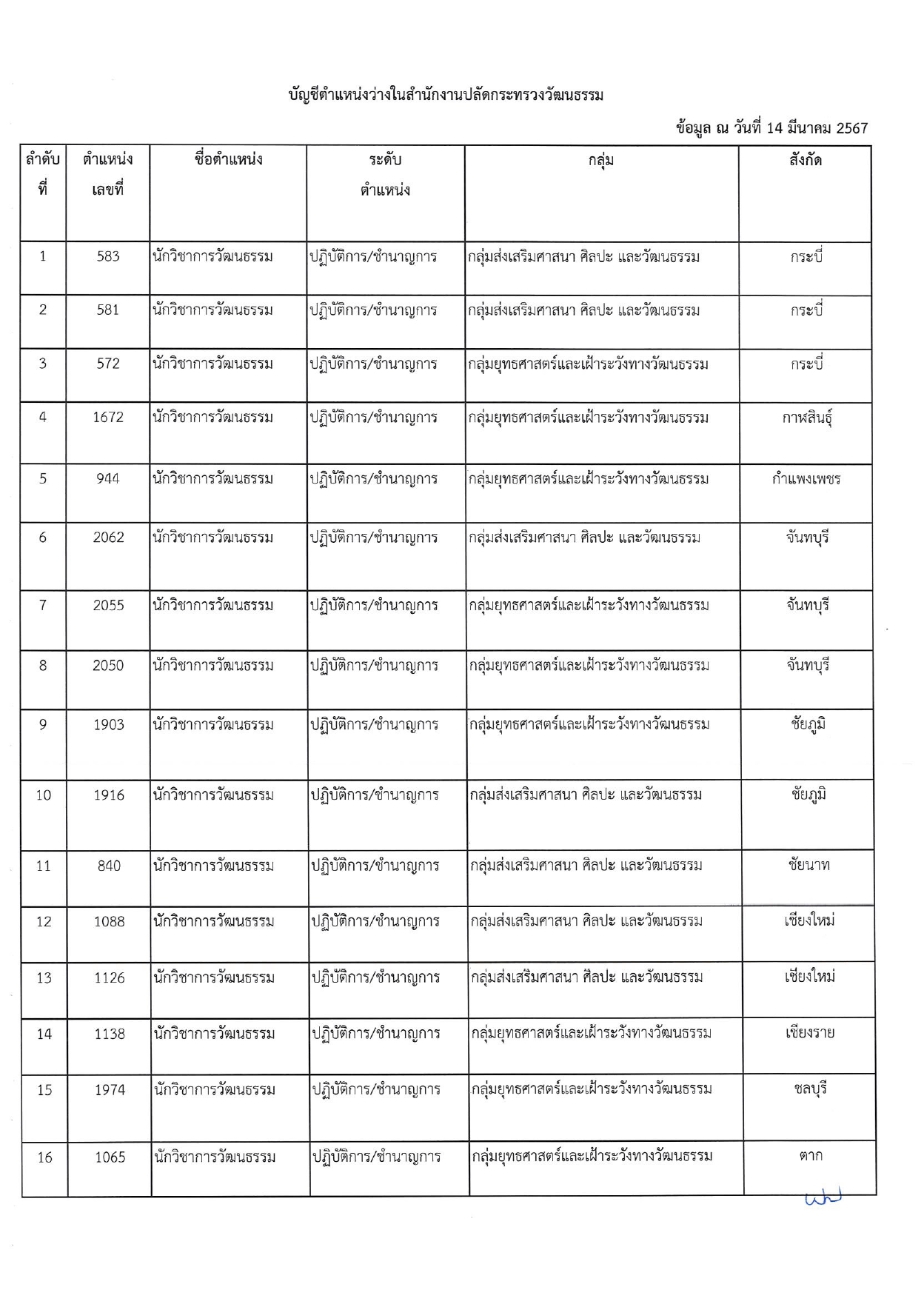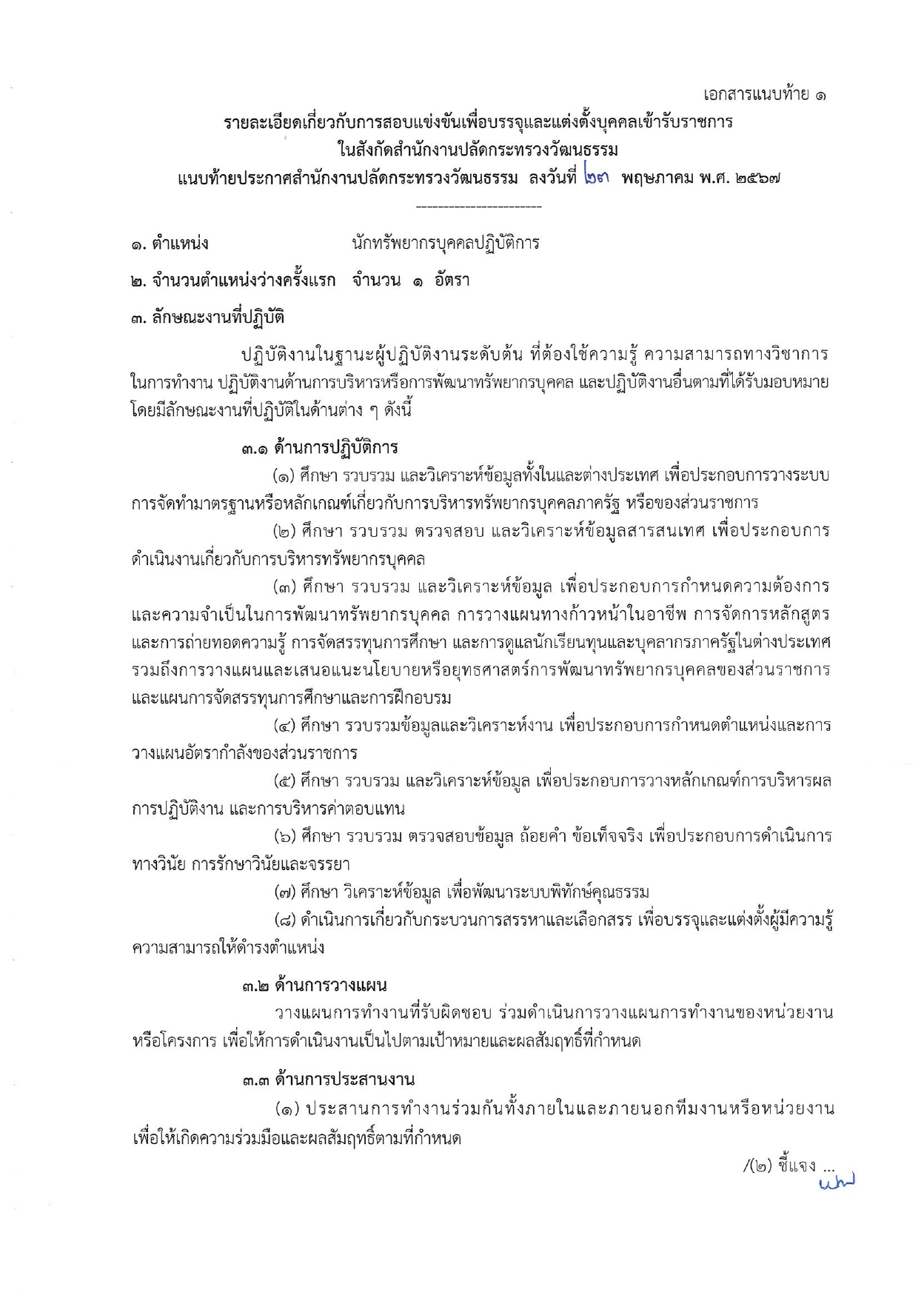 - ประกาศกระทรวงวัฒนธรรม รับสมัครสอบแข่งขันเพื่อบรรจุและแต่งตั้งบุคคลเข้ารับราชการ สังกัดสำนักงานปลัดกระทรวงวัฒนธรรม