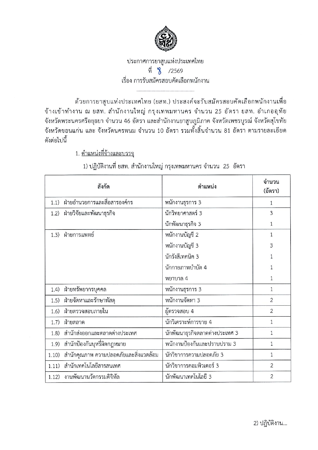 1.1 สำนักงานใหญ่ กรุงเทพมหานคร (รวม 25 อัตรา)